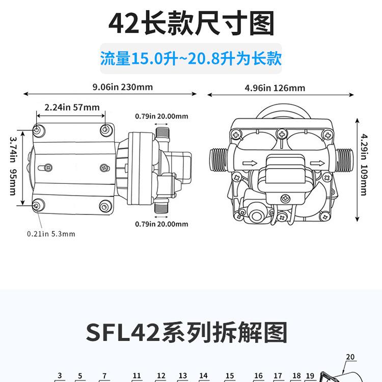 42 Bombas de Diafragma Eléctricas Silenciosas para RVs y Yates CC 12V24V Llenadora Autocebante Booster Succión Bomba de Agua