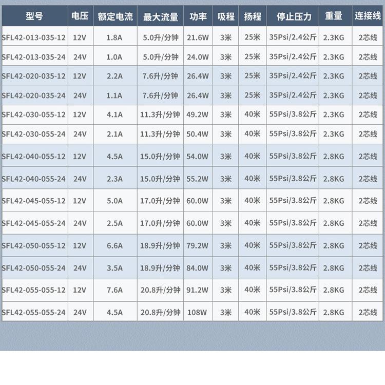 Black: sfl42-013-035-12v 5.0l, Black: sfl42-013-035-24v 5.0l, Black: sfl42-020-035-12v 7.6l, Black: sfl42-020-...