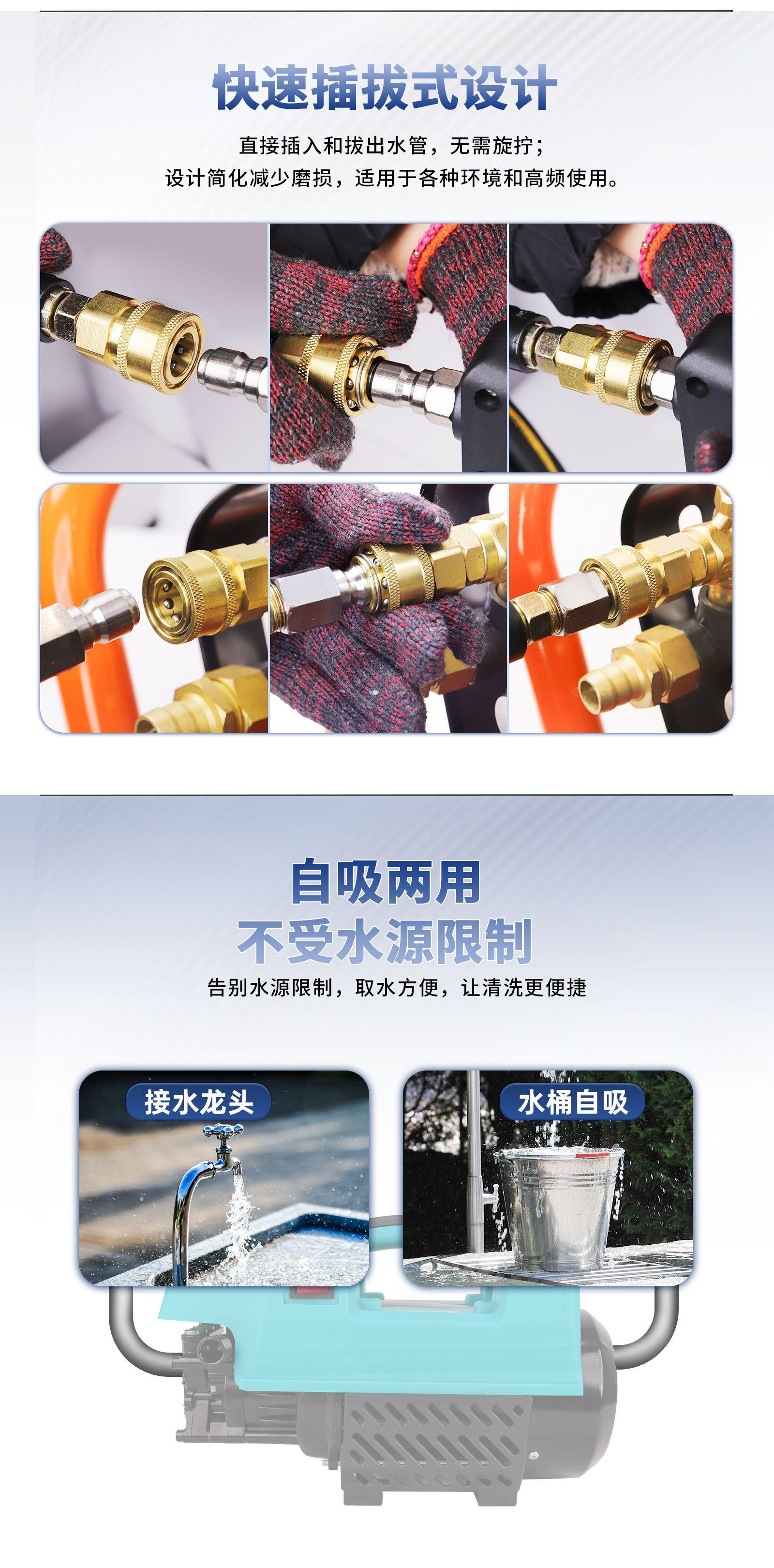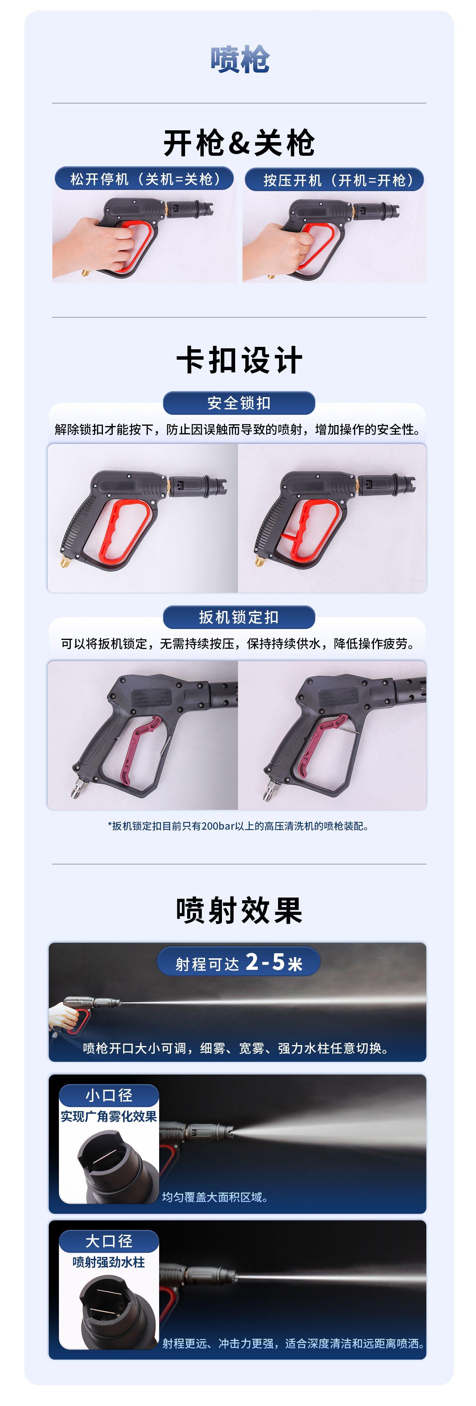 El rango de presión de agua para las hidrolimpiadoras eléctricas de alta presión suele estar entre 100 y 400 bares, según el modelo y los requisitos de la aplicación. La presión de agua adecuada se puede seleccionar según la tarea de limpieza.