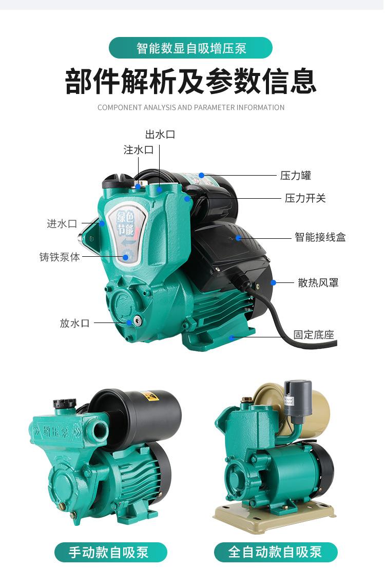 Bomba Autocebante Totalmente Automática para el Hogar Bomba Booster Bomba de Agua de Pozo Bomba de Agua Limpia Bomba Booster para Tuberías Alto Caudal Alta Potencia Bomba para Aire Acondicionado