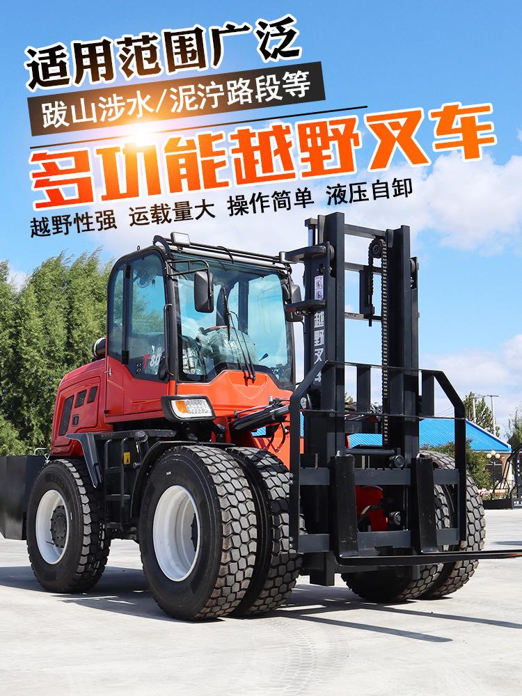 Montacargas Todoterreno 3 Toneladas 5 Toneladas Todoterreno Diésel Multifuncional Nuevo Ajustable y Elevador Dirección Trasera Combustión Interna Montacargas de Cuatro Ruedas