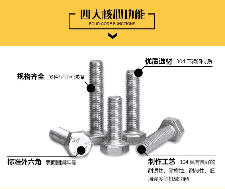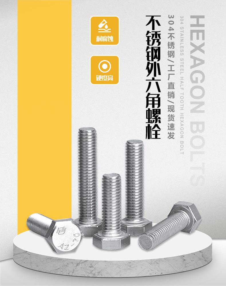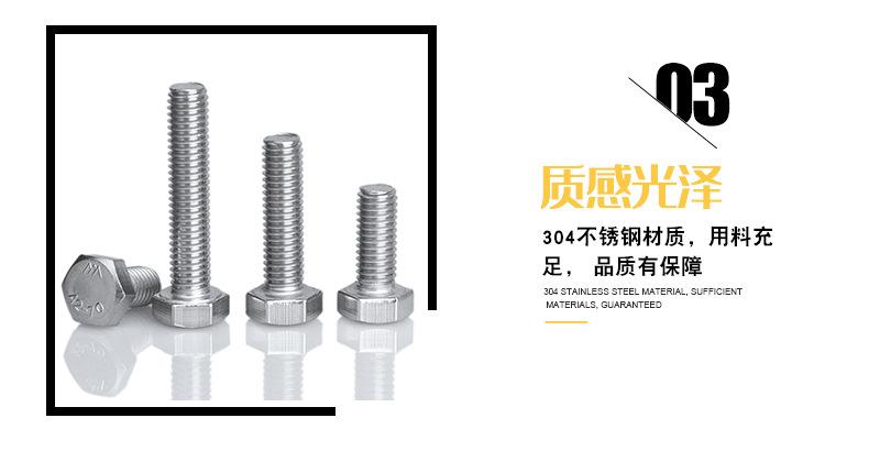 Tornillos de Cabeza Hexagonal de Acero Inoxidable 304 Pernos Tornillos de Cabeza Hexagonal M8M10 Fijación Piezas Estándar Venta al Por Mayor Rosca Completa