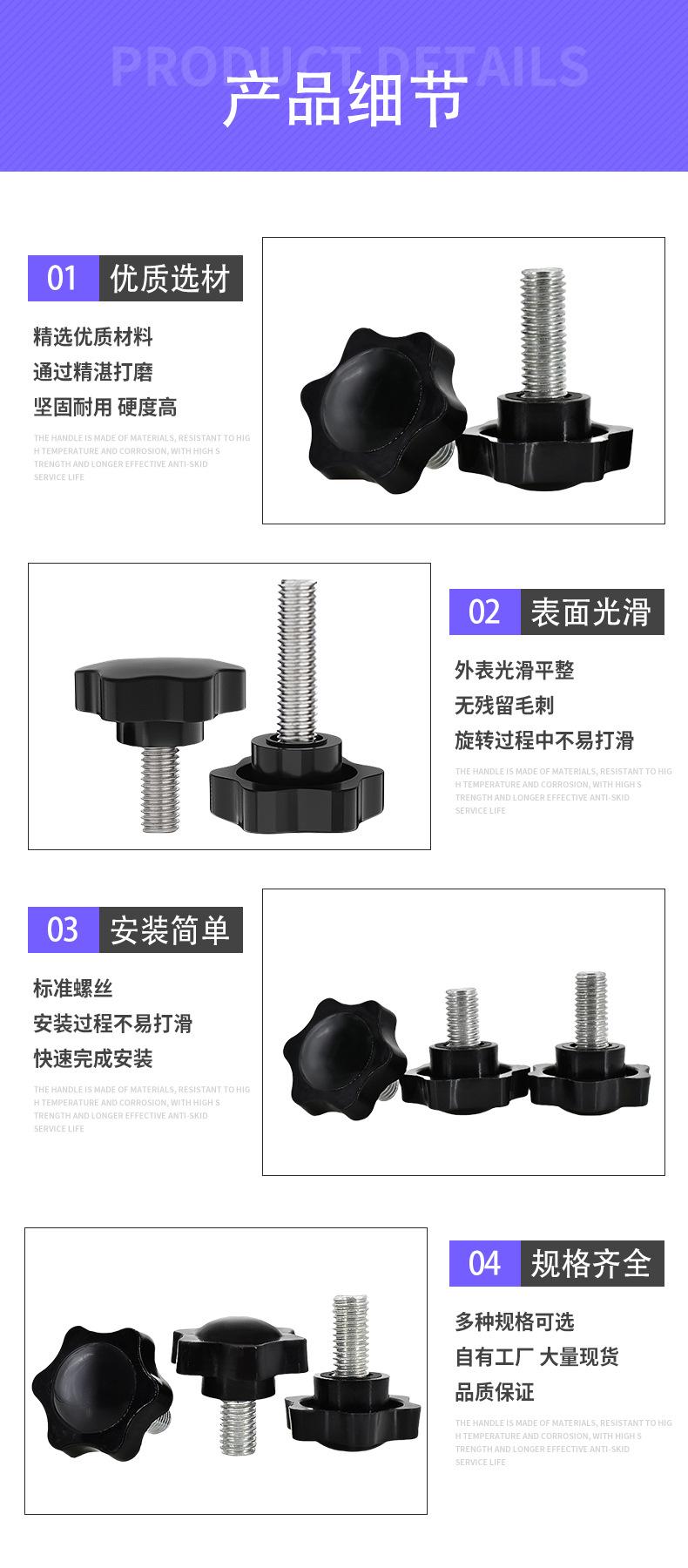 Acero Inoxidable 304 Mango Flor de Ciruelo Tornillo Mango Estrella Estrella Hexagonal Perilla de Goma Tornillo de Mano Perno M4M5M6M8M10
