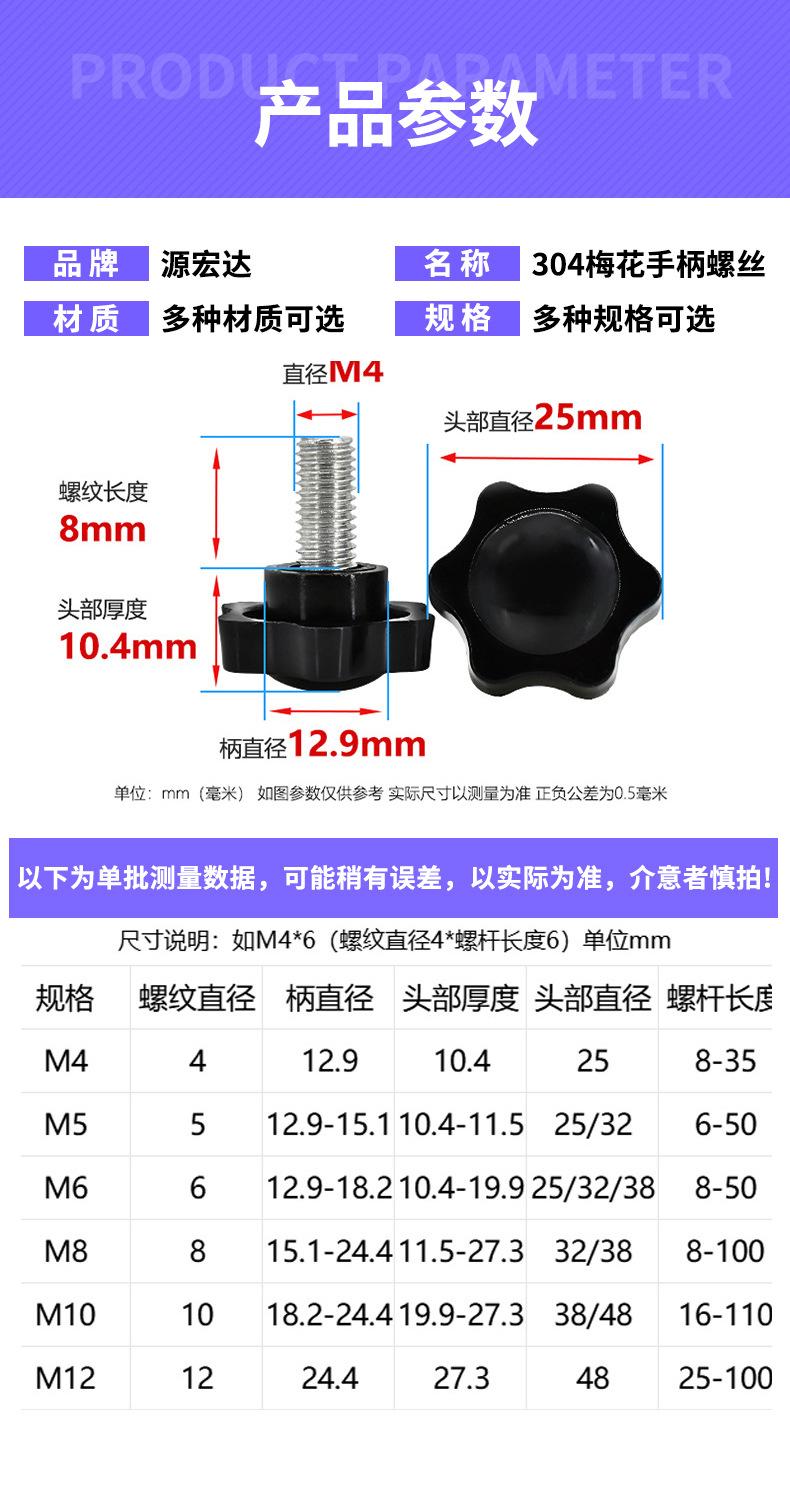 M4*8 (25# 304 plum blossom thumb screws), M4*10 (25# 304 plum blossom thumb screws), M4*12 (25# 304 plum bloss...