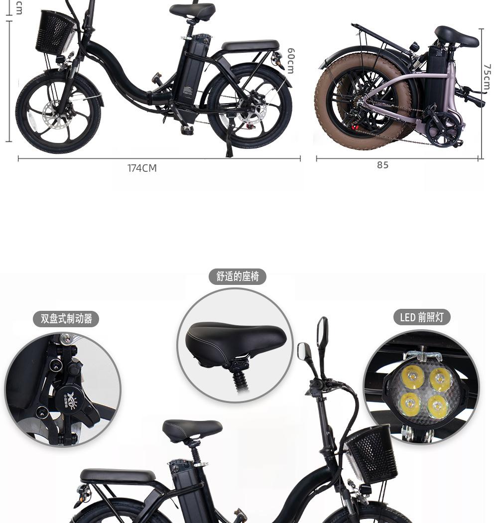 Bicicleta eléctrica plegable de playa de nieve de 20 pulgadas batería de litio para caminar batería doble portátil coche de batería portátil