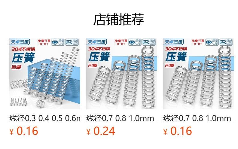 Diámetro del alambre 0.7 0.8 1.0mm resorte de compresión de acero inoxidable 304 Tamaño de la presión del resorte de compresión Colección de resortes de absorción de impactos