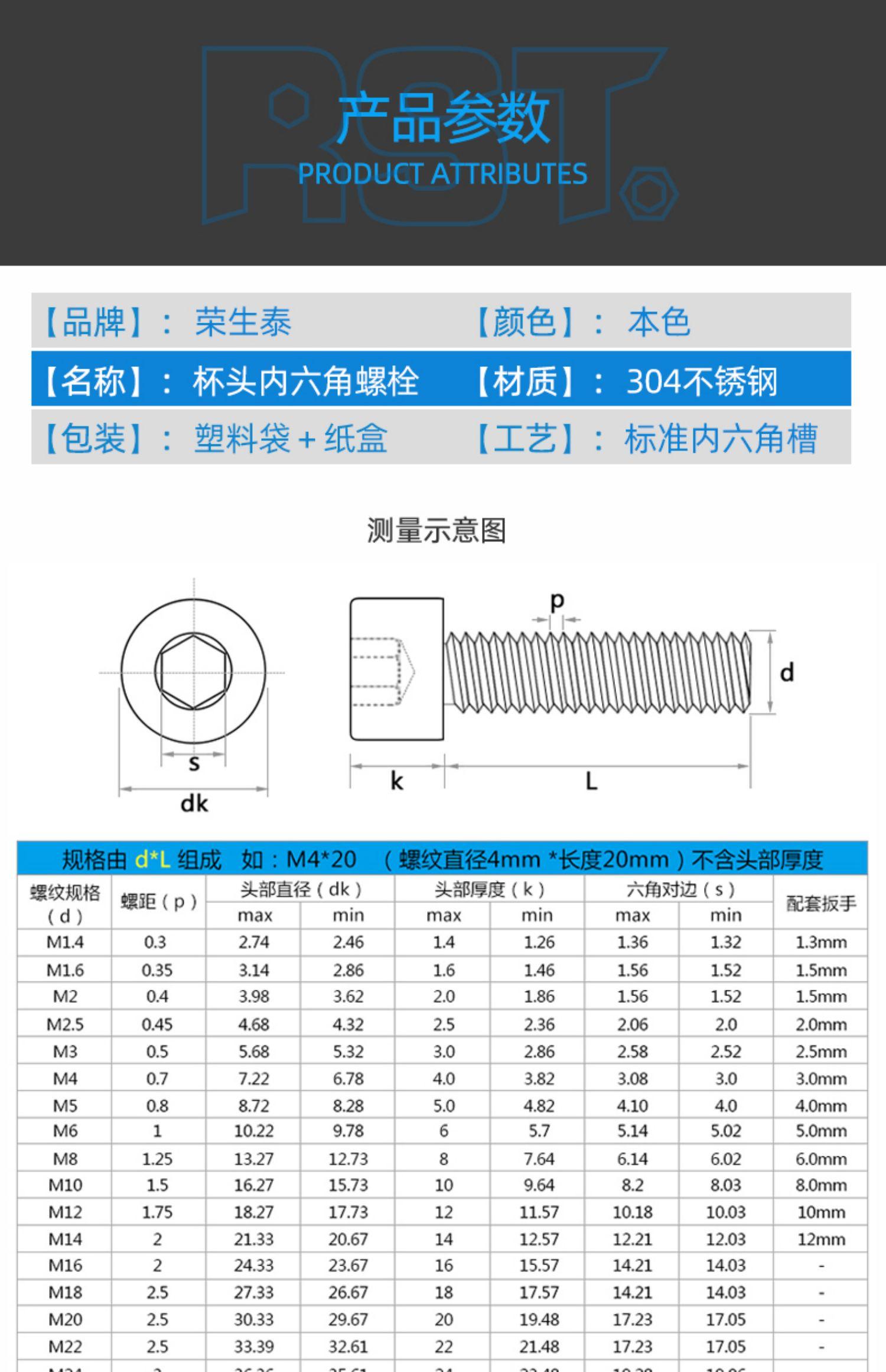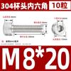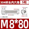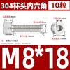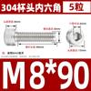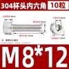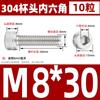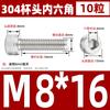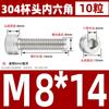 M3M4M5M6M8 Cabeza de Copa Hexagonal 304 Tornillo de Máquina Perno de Acero Inoxidable Cilindro M10M12M14M16