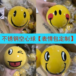 | Venta al por mayor de bolas huecas esféricas de acero inoxidable para decoración de escaparates, bolas decorativas con cara sonriente, bolas colgantes, paquete de producción de expresión |