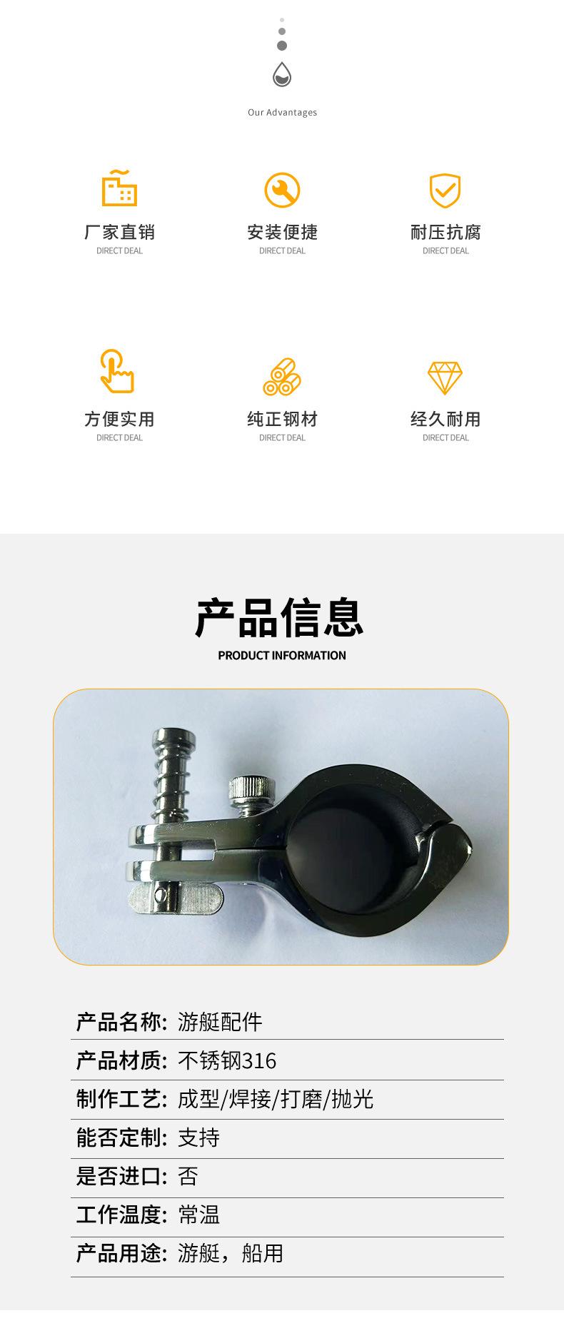 Herrajes marinos fundición de precisión de acero inoxidable accesorios para yates de acero inoxidable abrazadera de tubo de cuerpo abierto 25