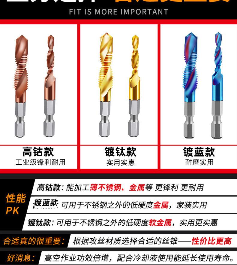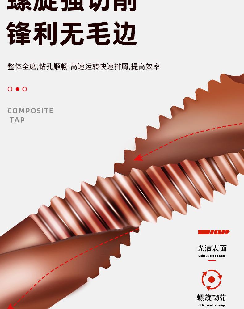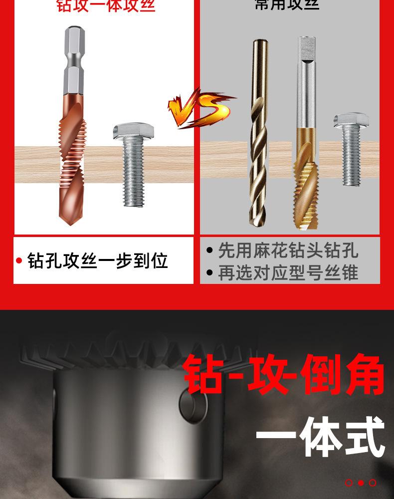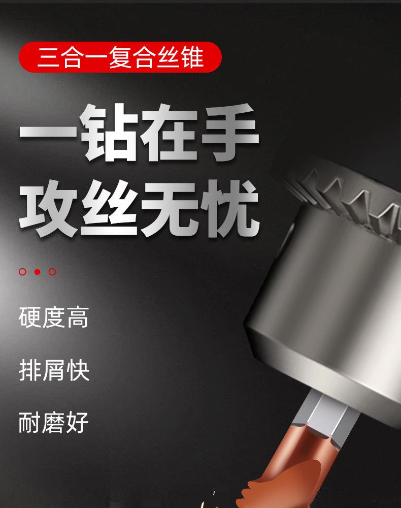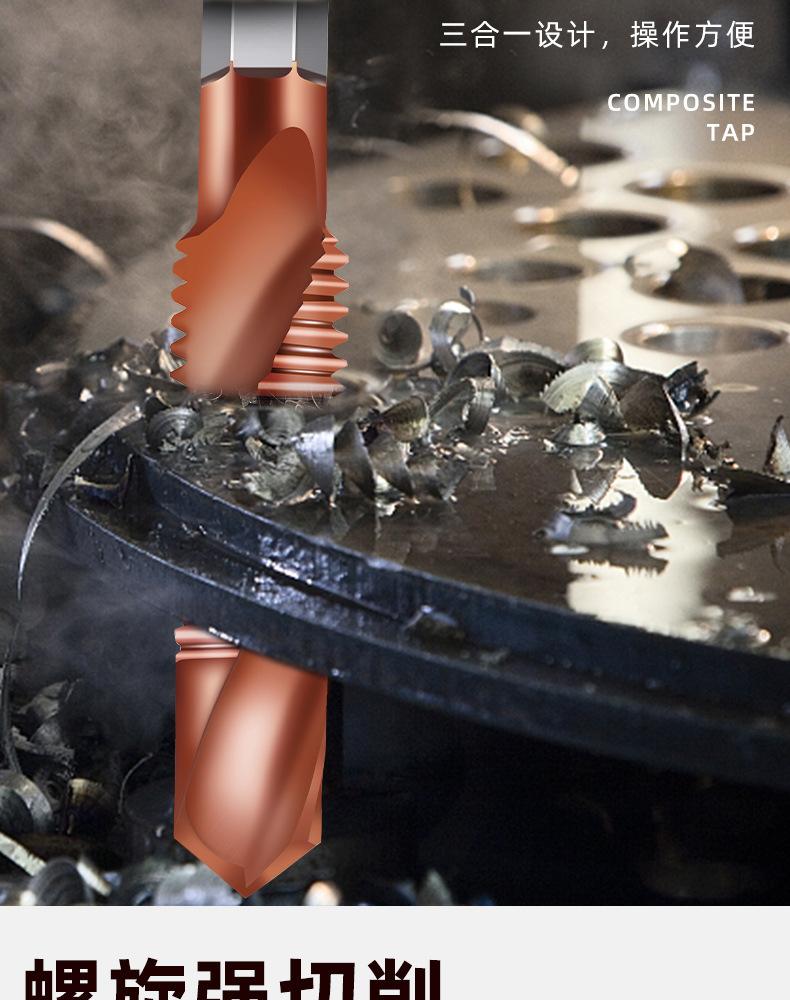 Broca Espiral para Macho de Roscar Compuesto Tres en Uno Integrado para Taladrar y Roscado para Roscado de Tornillos Autorroscantes
