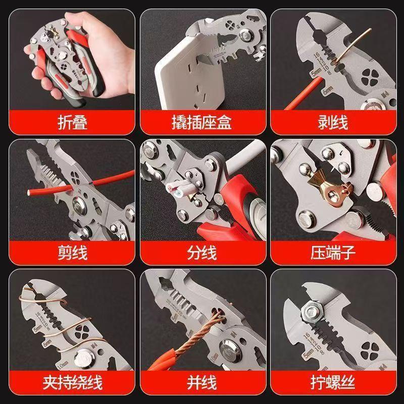 Nuevo Alicate Multifuncional para Pelar Cables Transfronterizo 12 en 1 Universal para Pelar y Crimpar Alicate para Pelar Cables Específico para Electricista