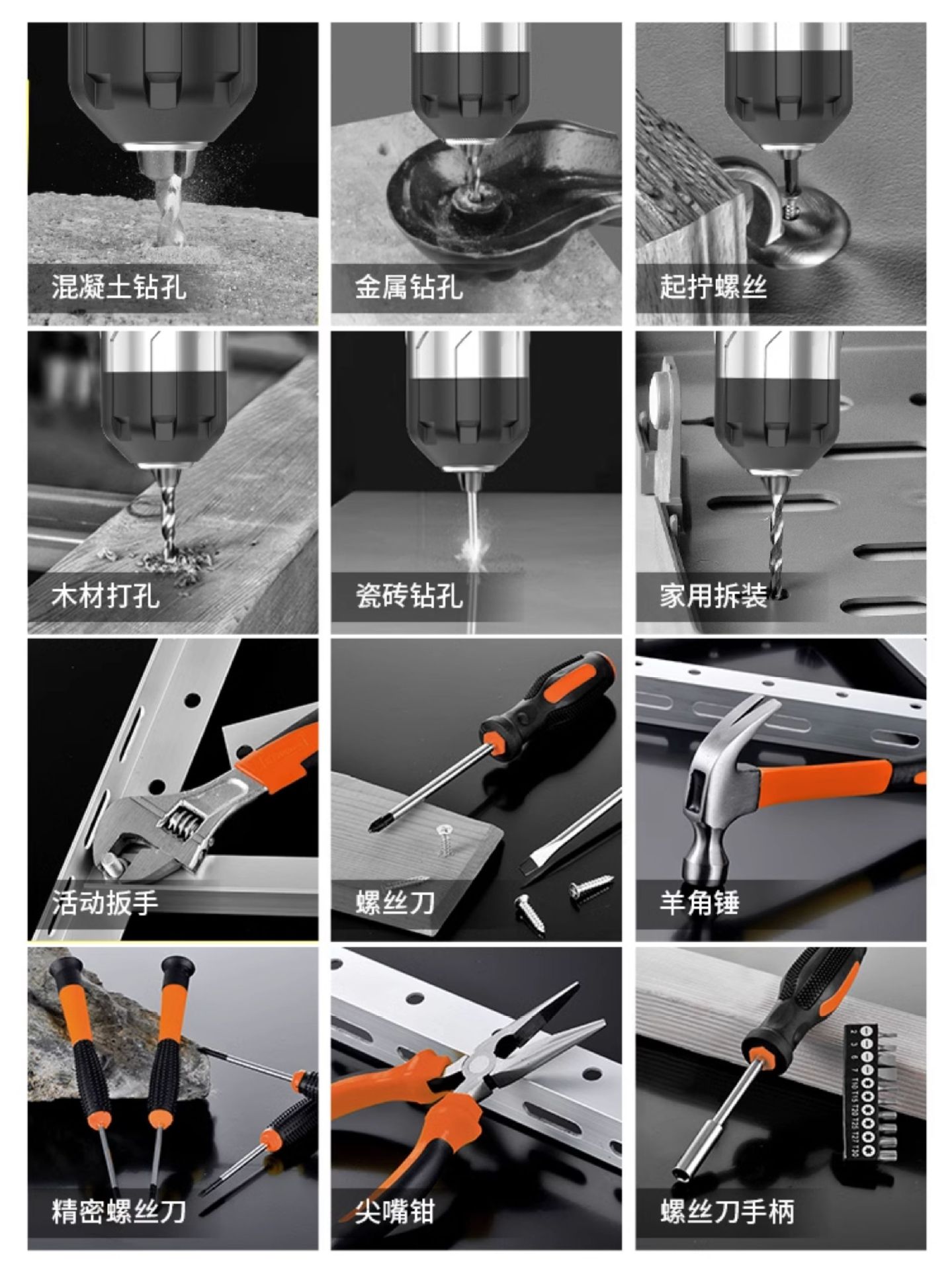 Juego de Herramientas Multifuncional Ferretería Electricista Reparación Combinación Juego Completo Taladro Eléctrico Caja de Herramientas para Coche Juego de Destornilladores