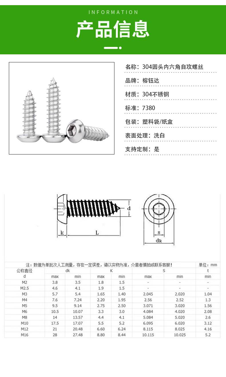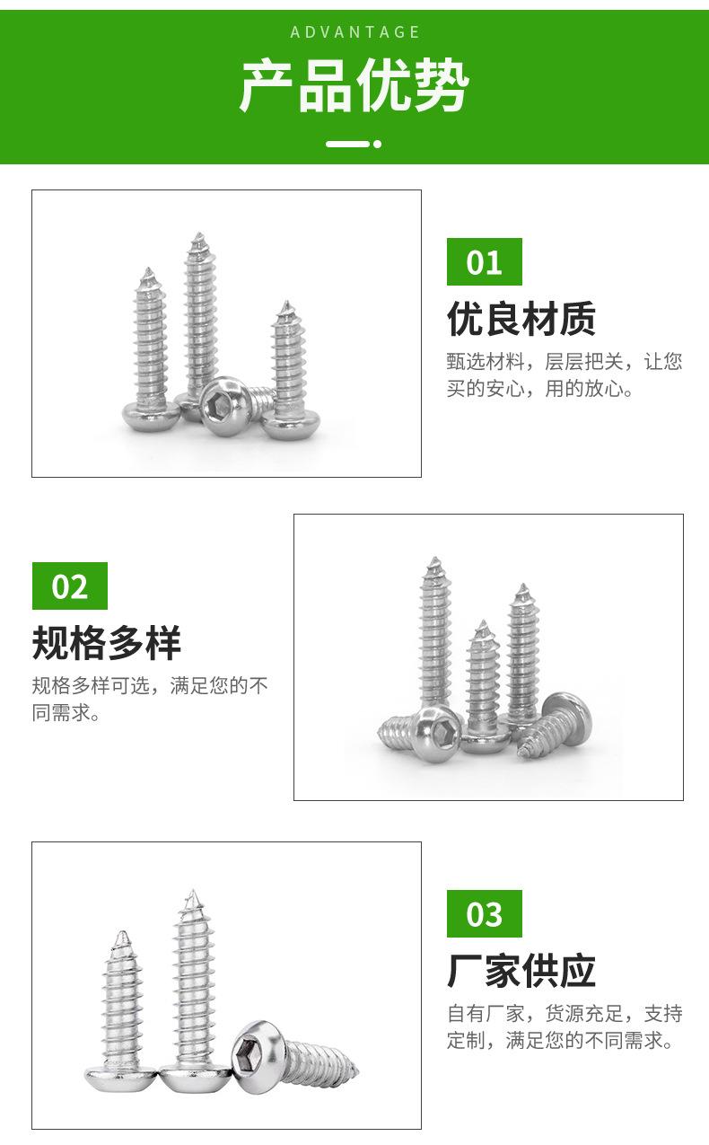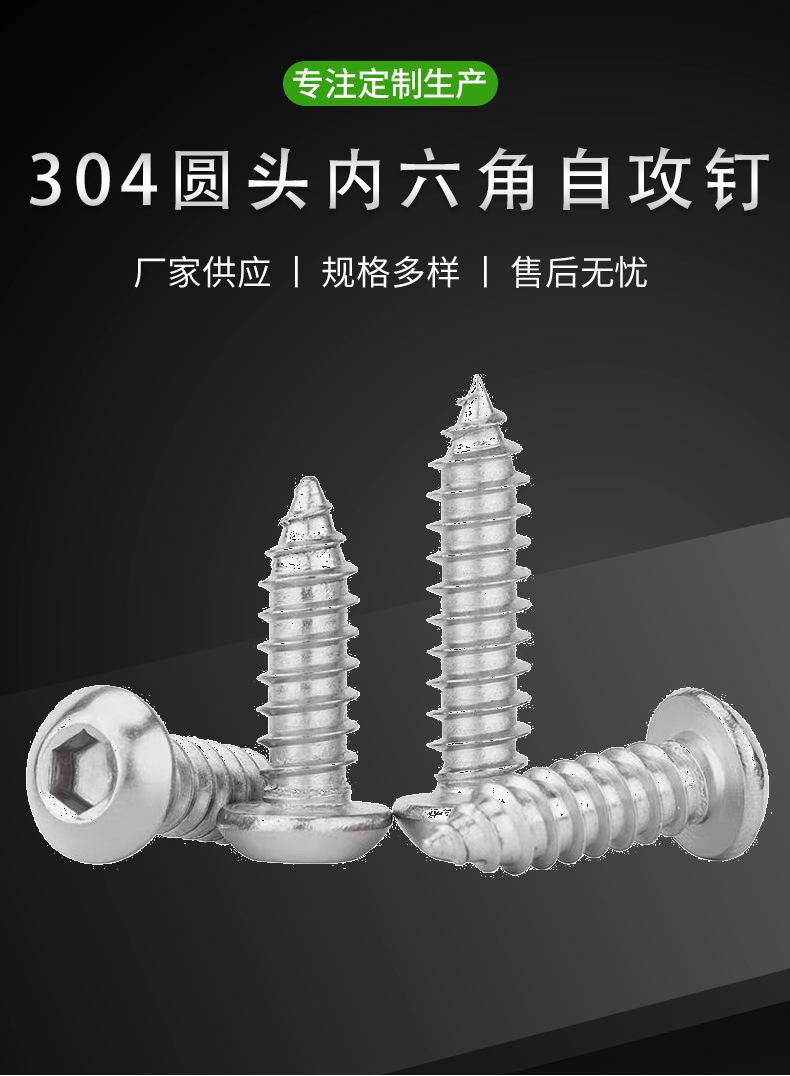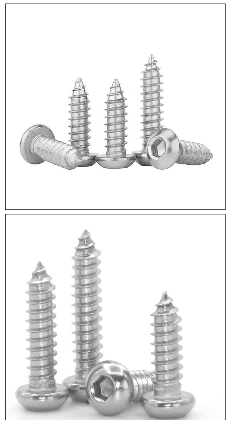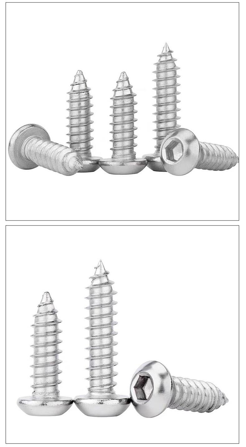 Tornillos autorroscantes de acero inoxidable 304 de cabeza redonda plana con hexágono interior, tornillos autorroscantes de cabeza de sartén con hexágono interior