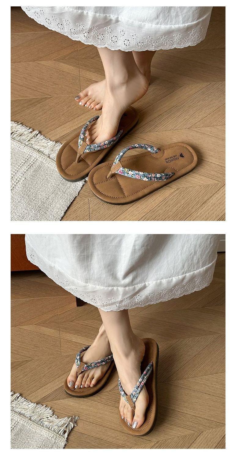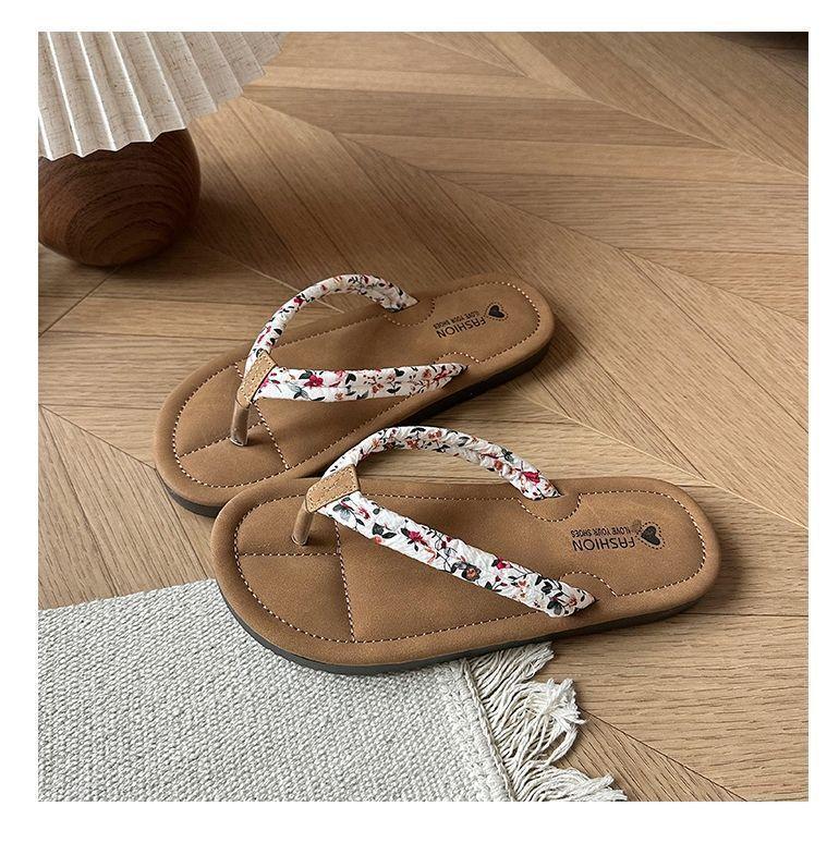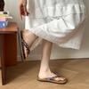 Pantuflas planas de suela blanda con una tira, nuevo estilo chino, pantuflas frescas para exteriores, chanclas de moda, ropa de exterior para mujer, nuevo verano y otoño 2025