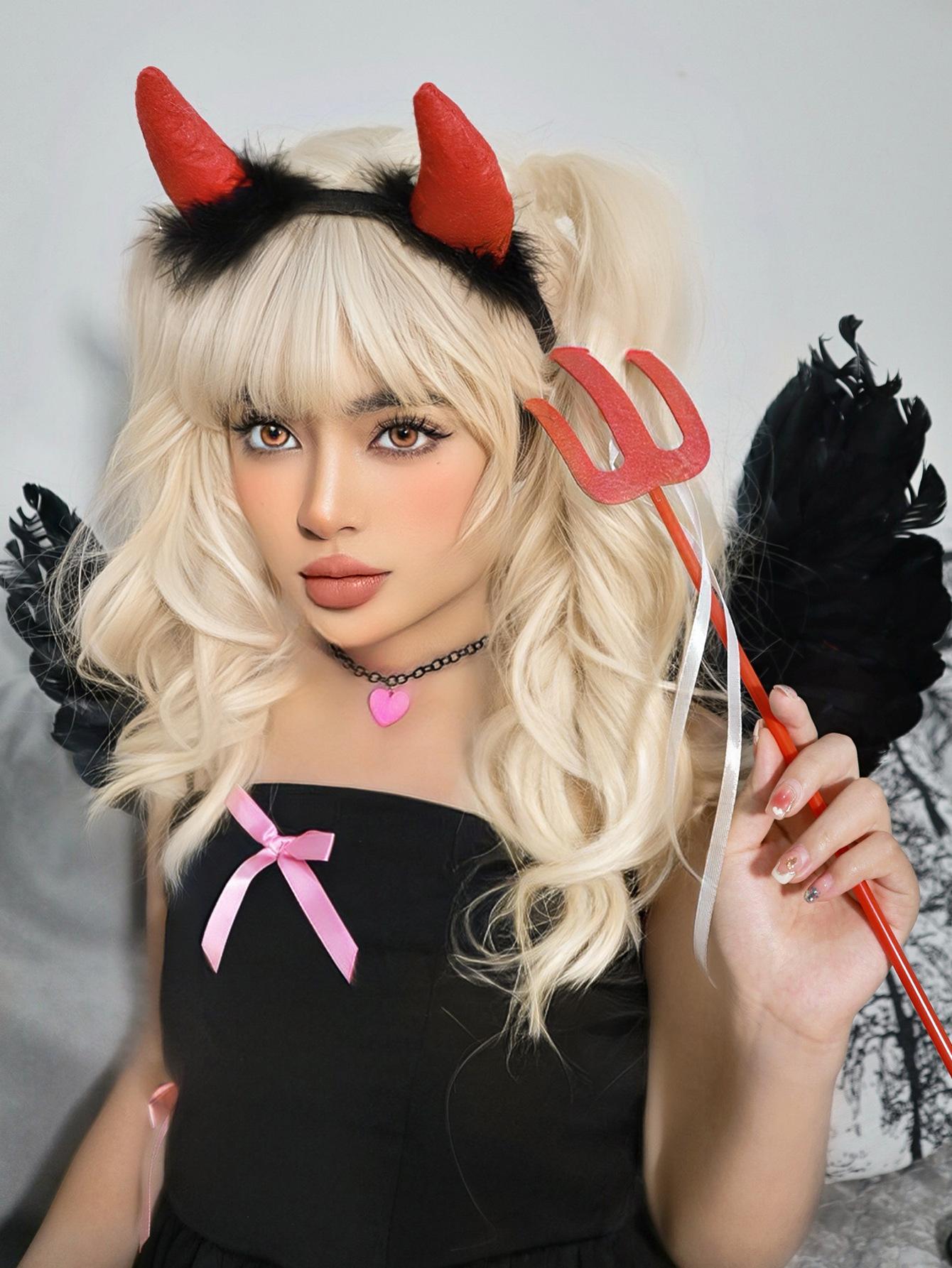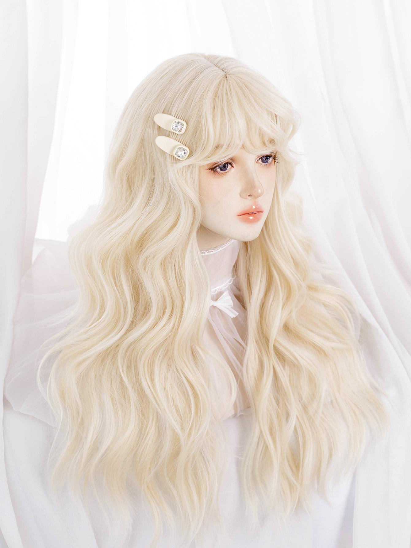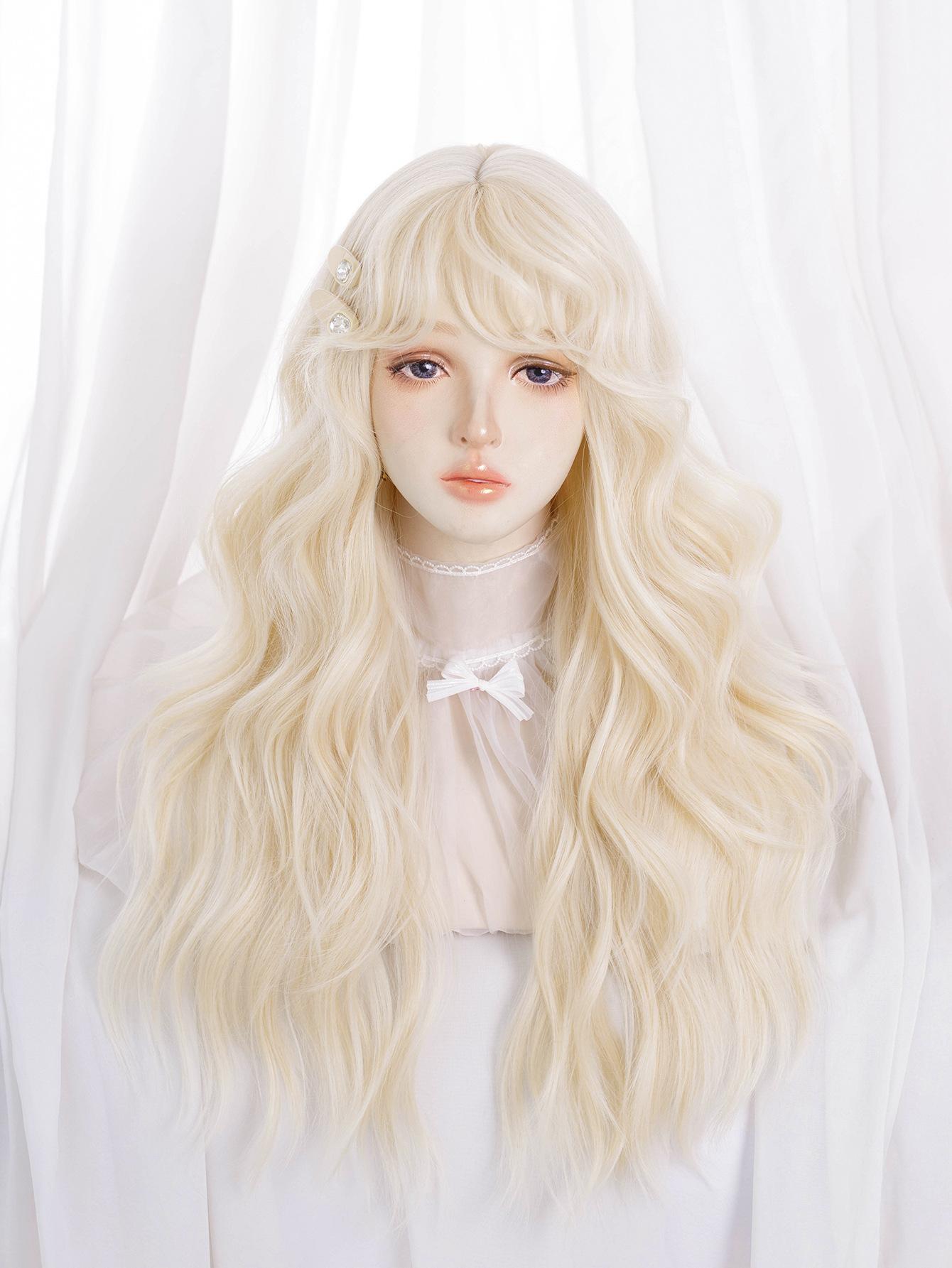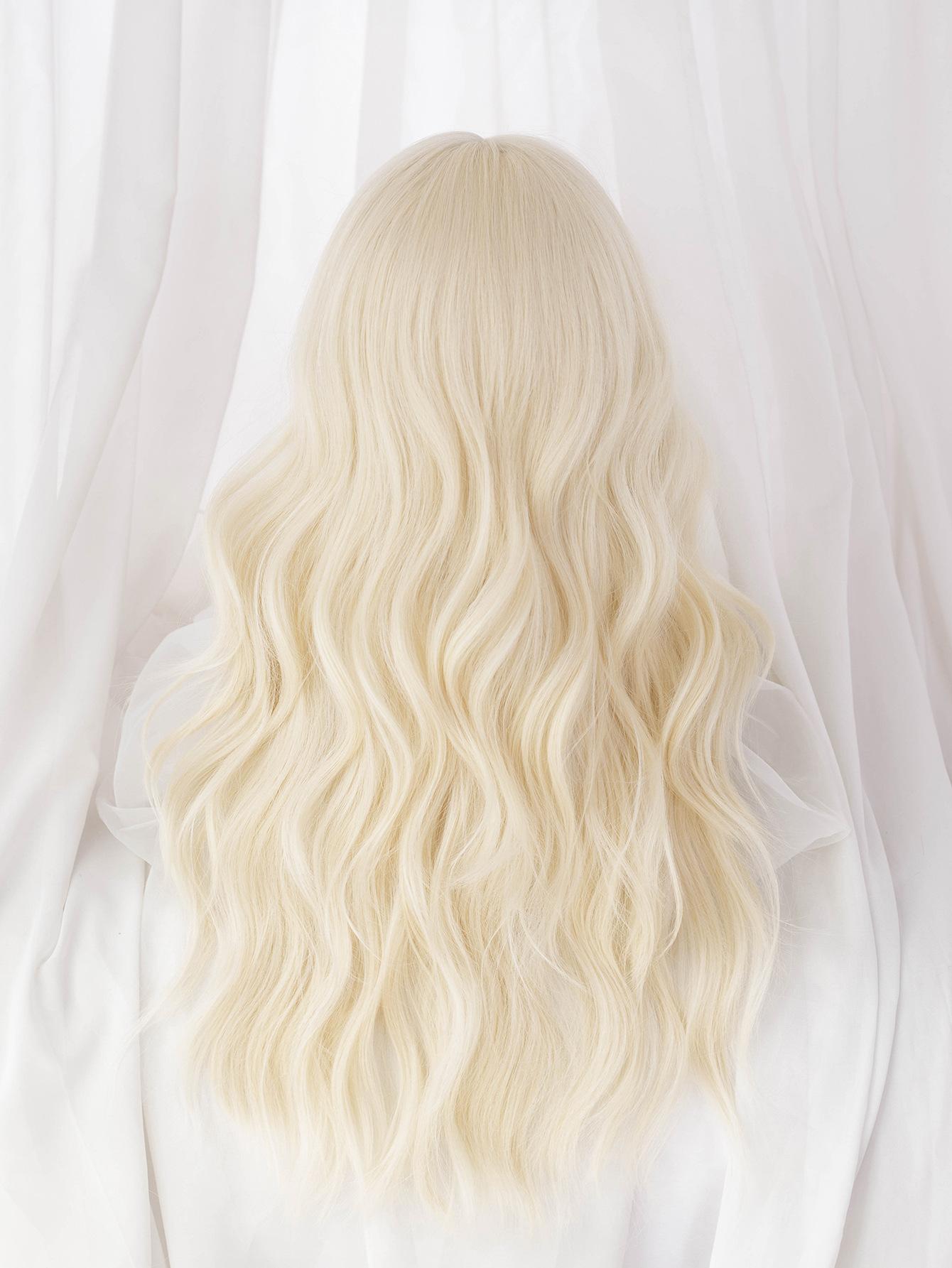 Peluca transfronteriza para mujer, cabello largo, cobertura completa de la cabeza, peluca rizada de lana, blanco dorado, rizos grandes, Lolita, cabello largo y rizado
