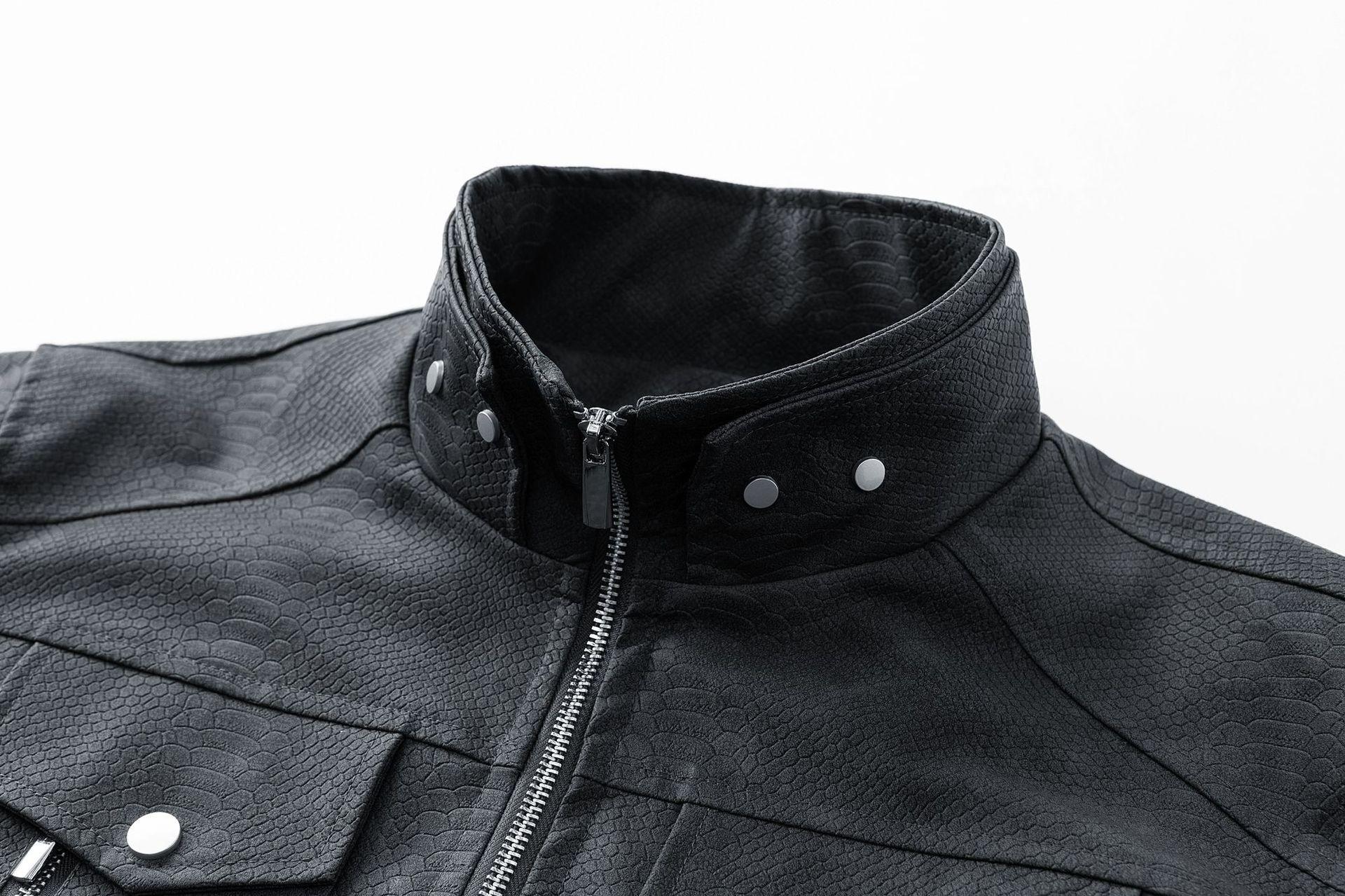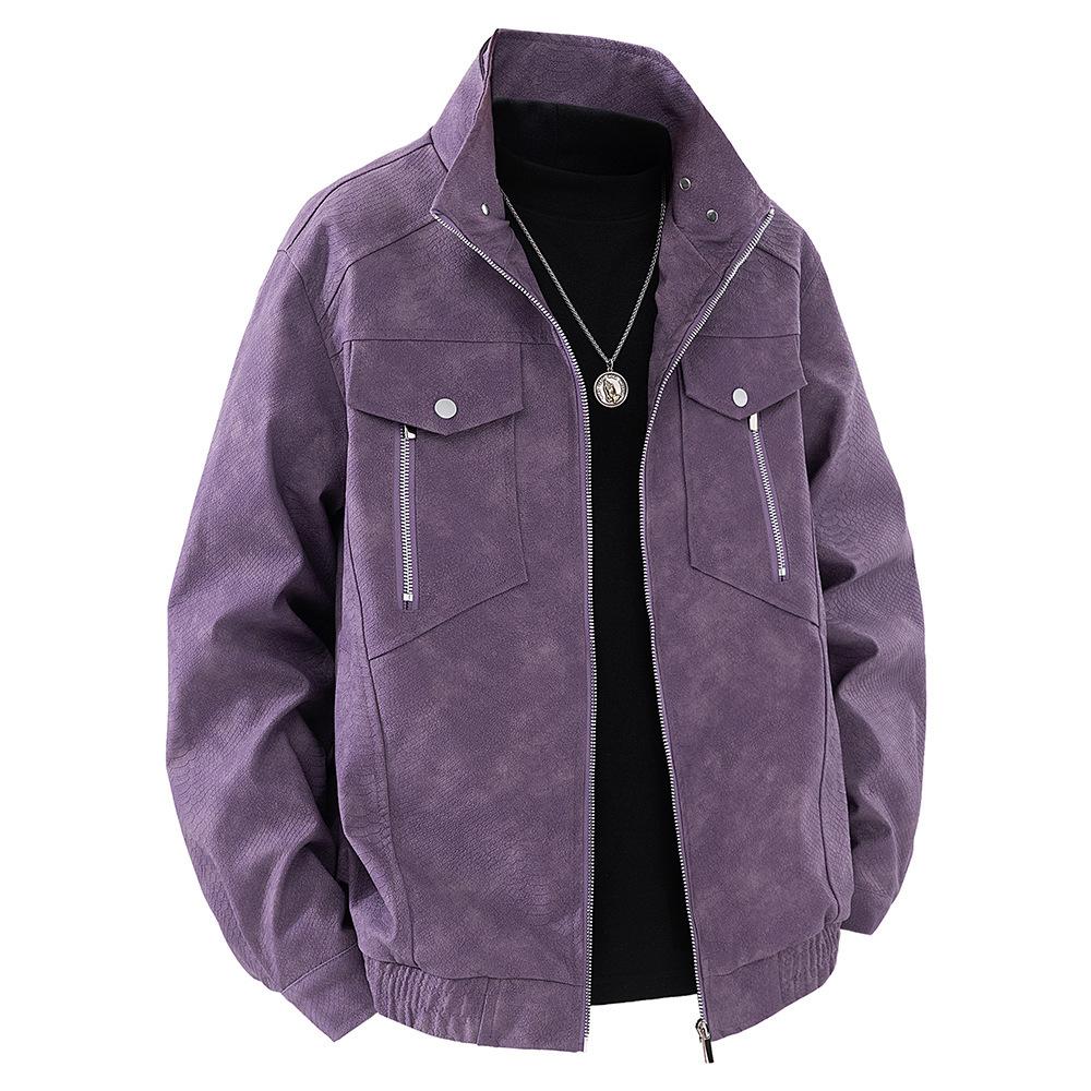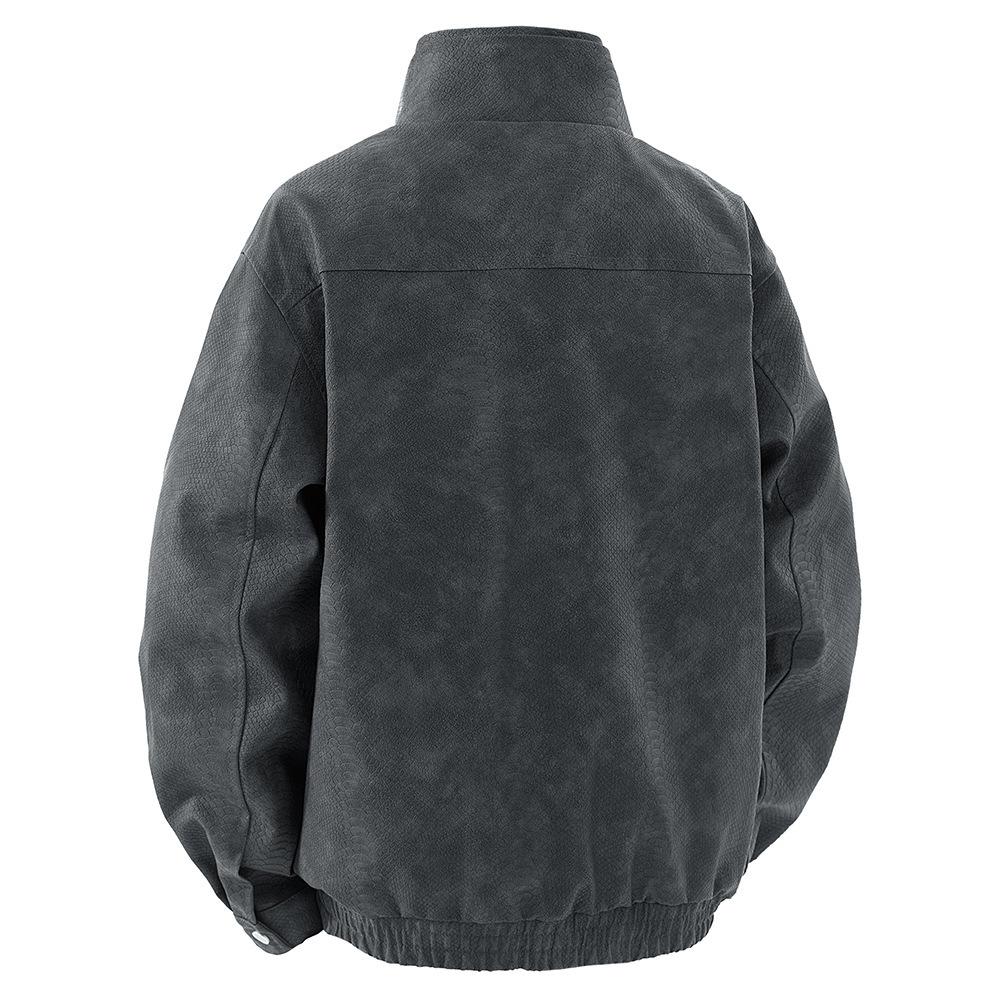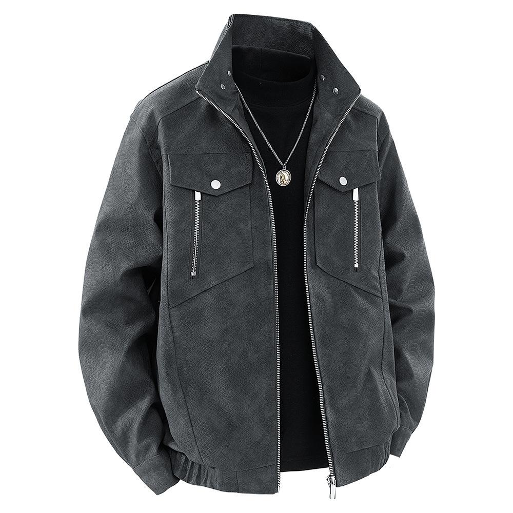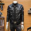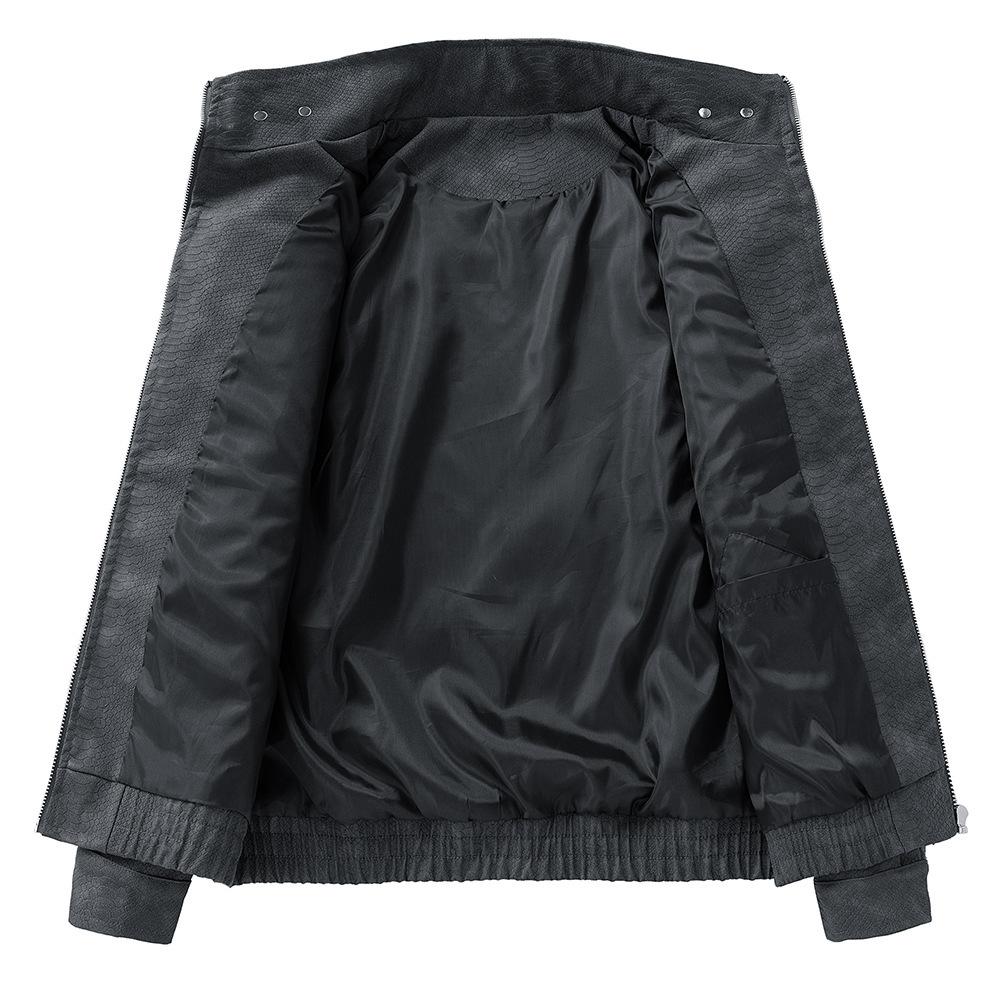 Chaqueta de Cuero para Hombre con Cuello Mao Chaqueta de Cuero PU con Cremallera de Marca Moderna Versátil de Tendencia Americana para Primavera y Otoño