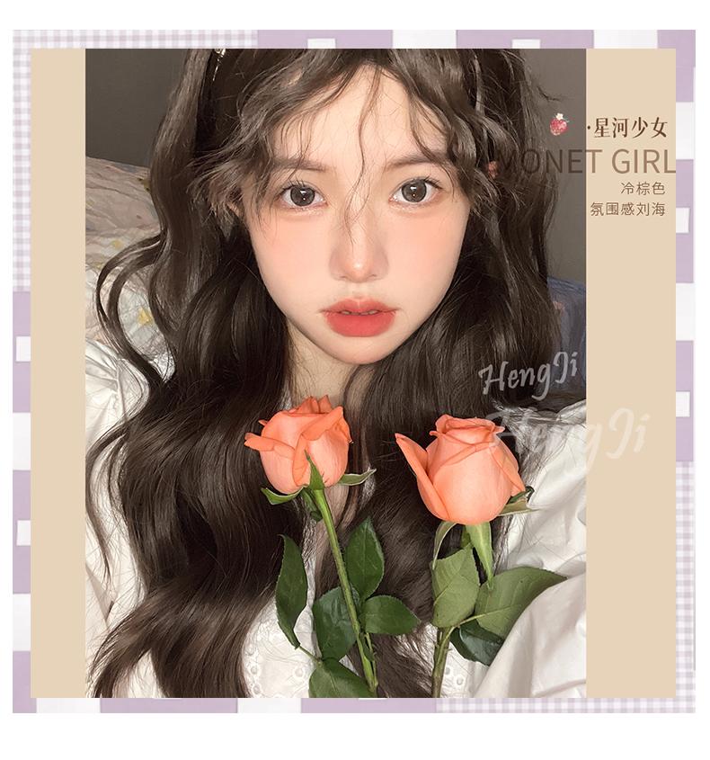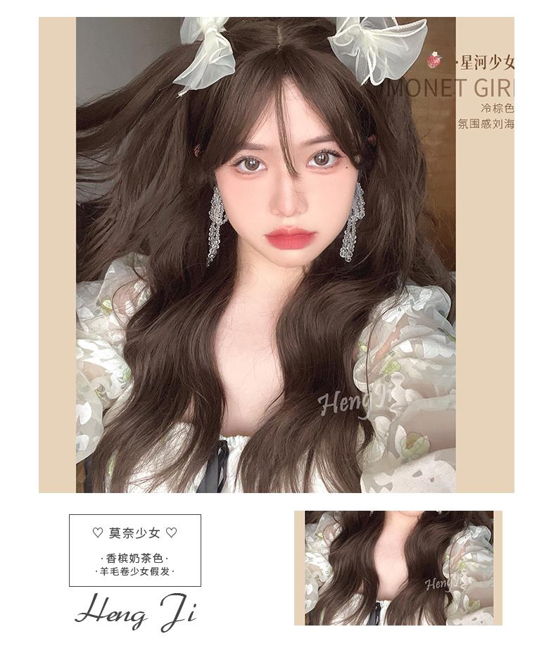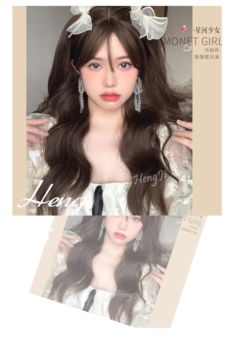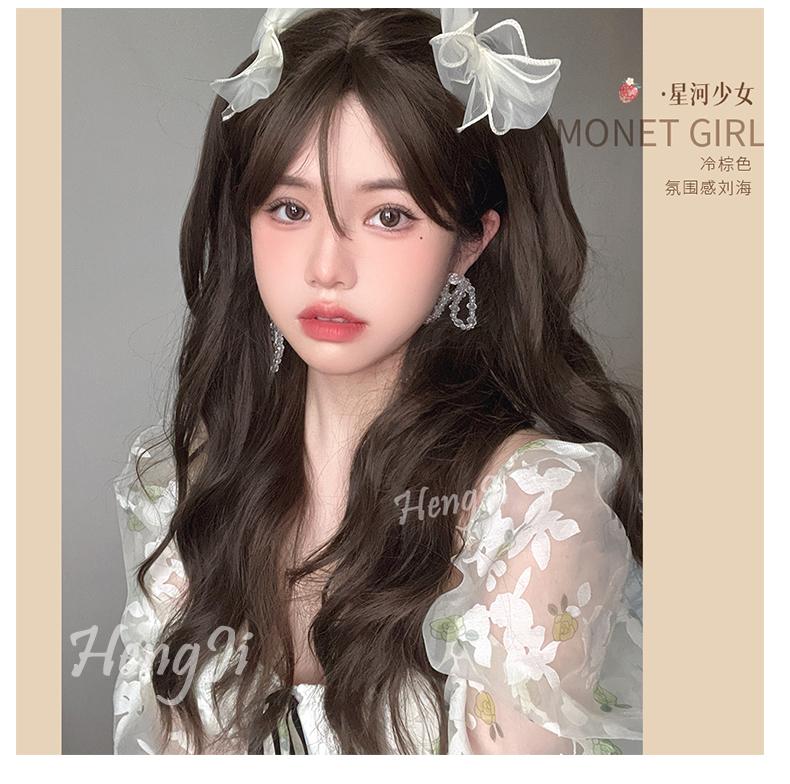 Peluca diaria para mujer, cabello largo, lolita, cobertura completa de cabeza, atmósfera, rizo, flequillo, simulación realista, cabello largo natural