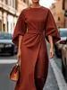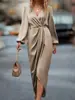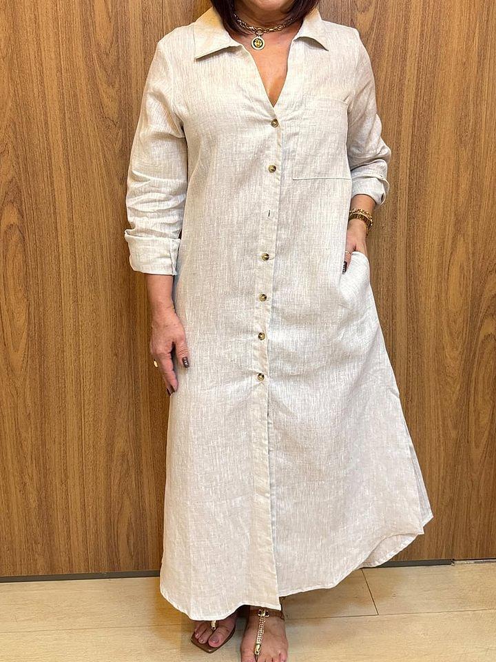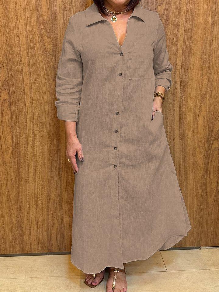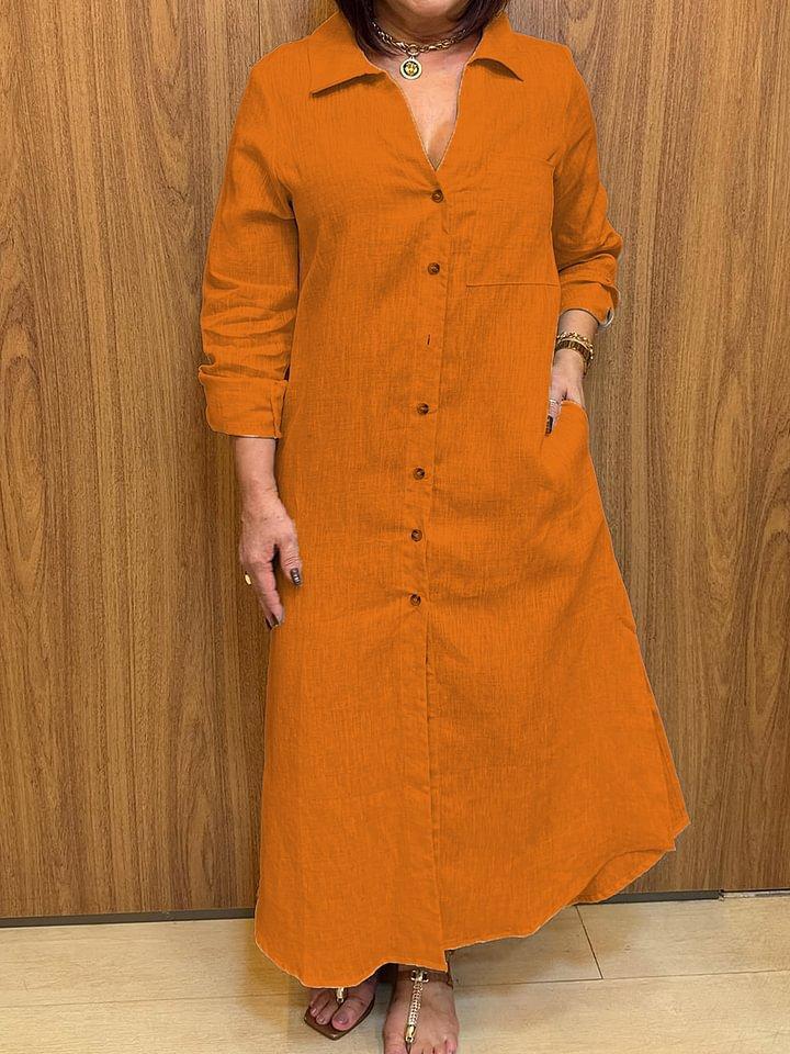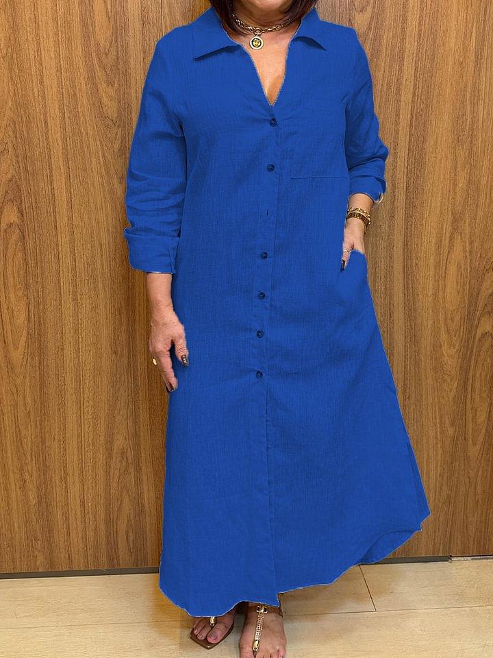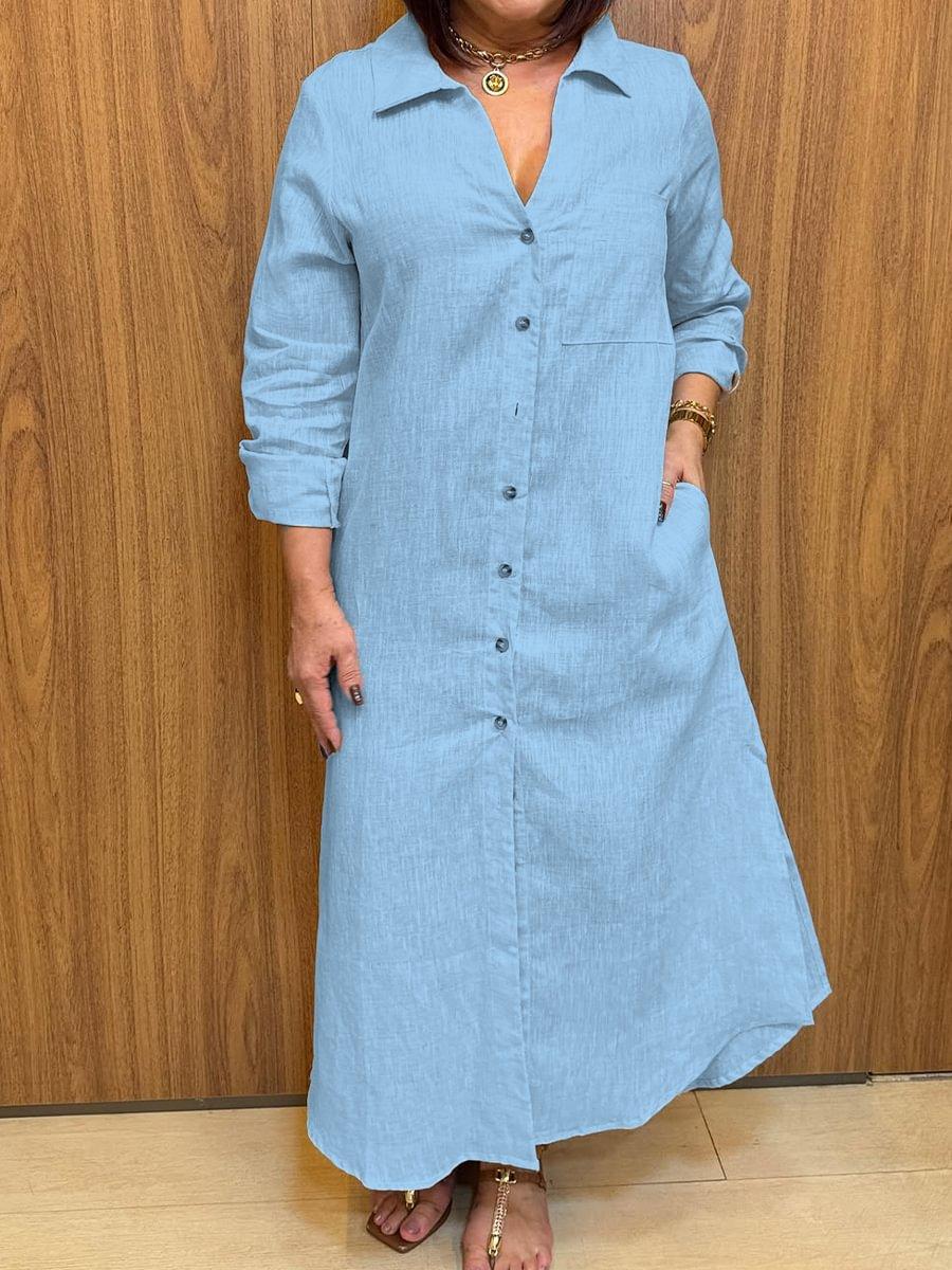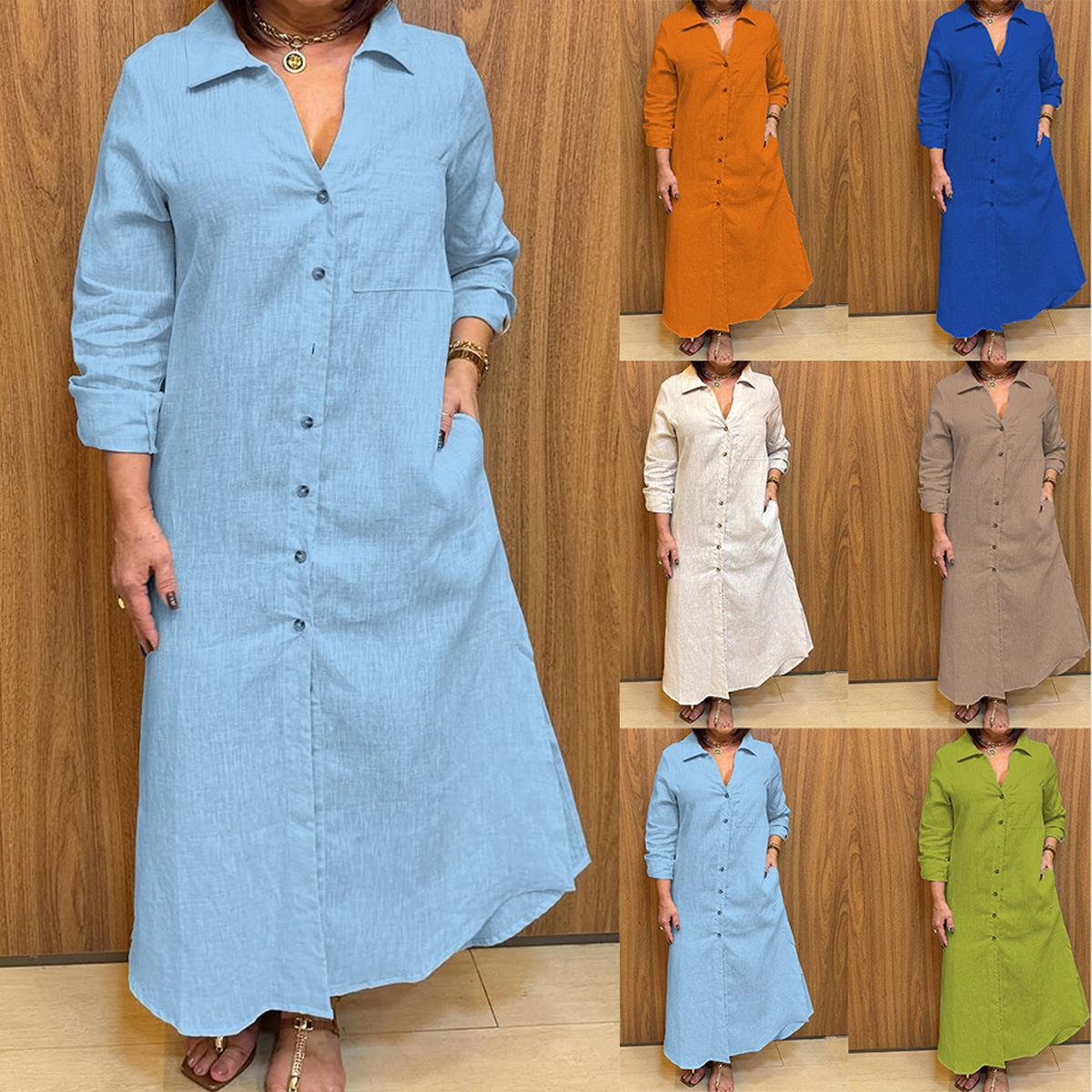 2025 Ropa de Mujer Europea y Americana Transfronteriza Amazon Nuevo Estilo Color Sólido Moda Casual Vestido Largo Simple Holgado Camisero de Manga Larga