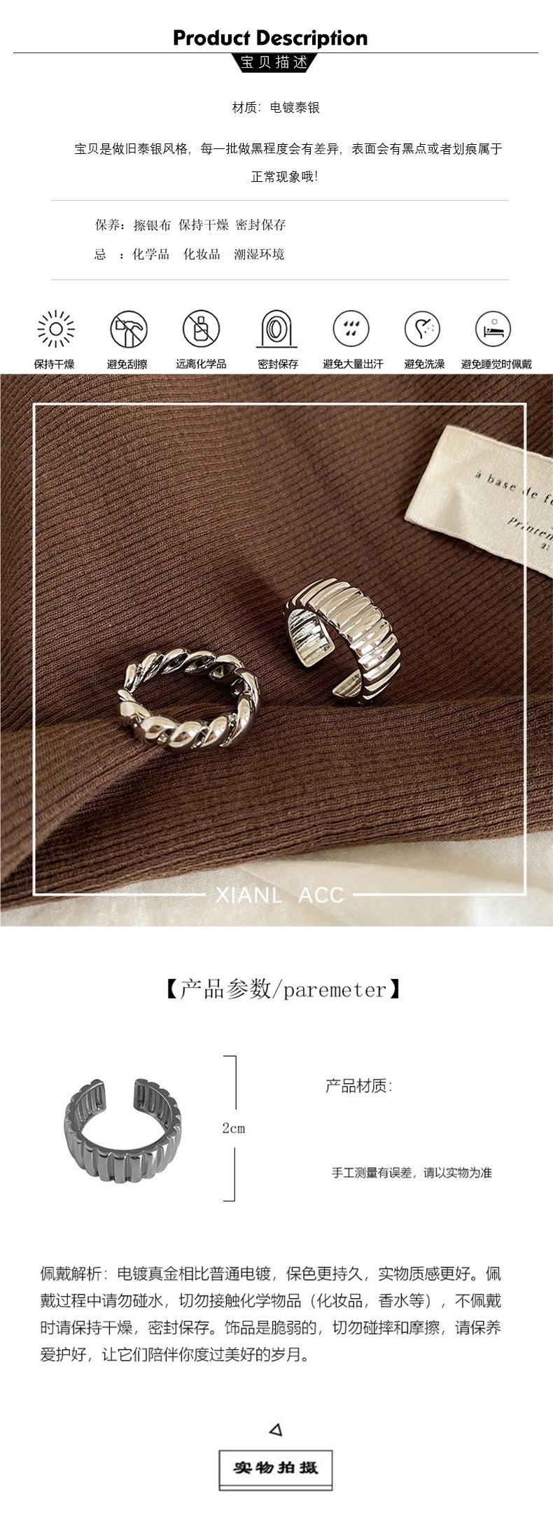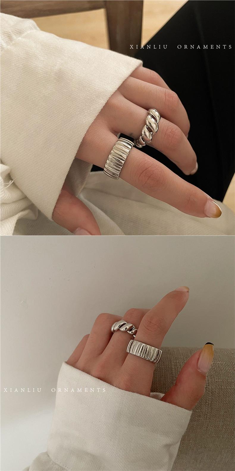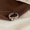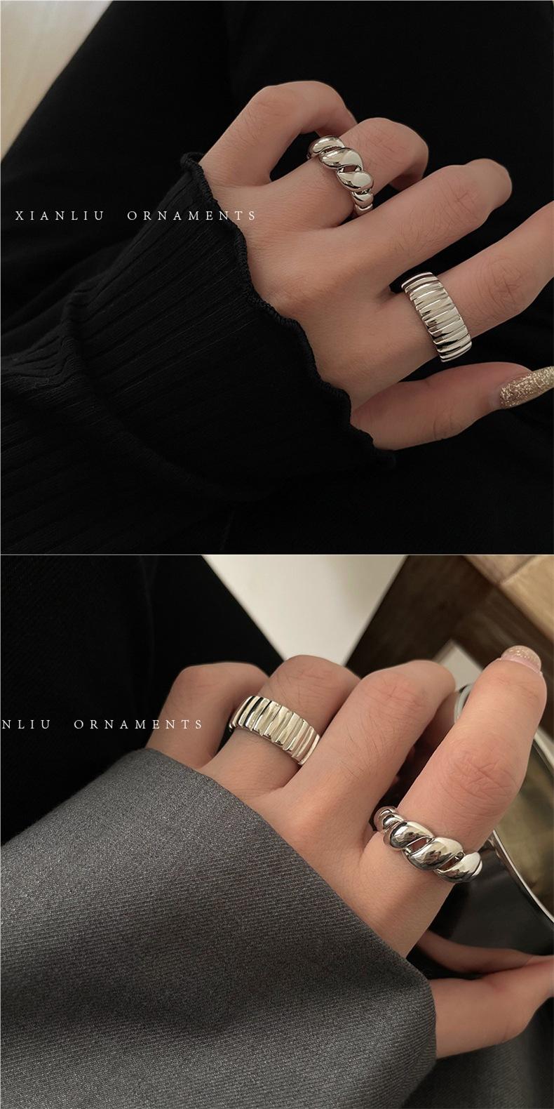 Anillo Hueco de Baguette Croissant de Plata S925 Versión Coreana para Mujer, Anillo Abierto Hip-Hop de Moda Retro, Anillo Creativo para el Dedo Índice