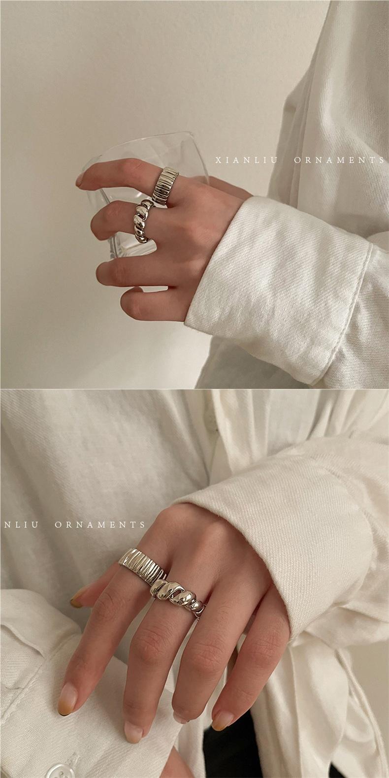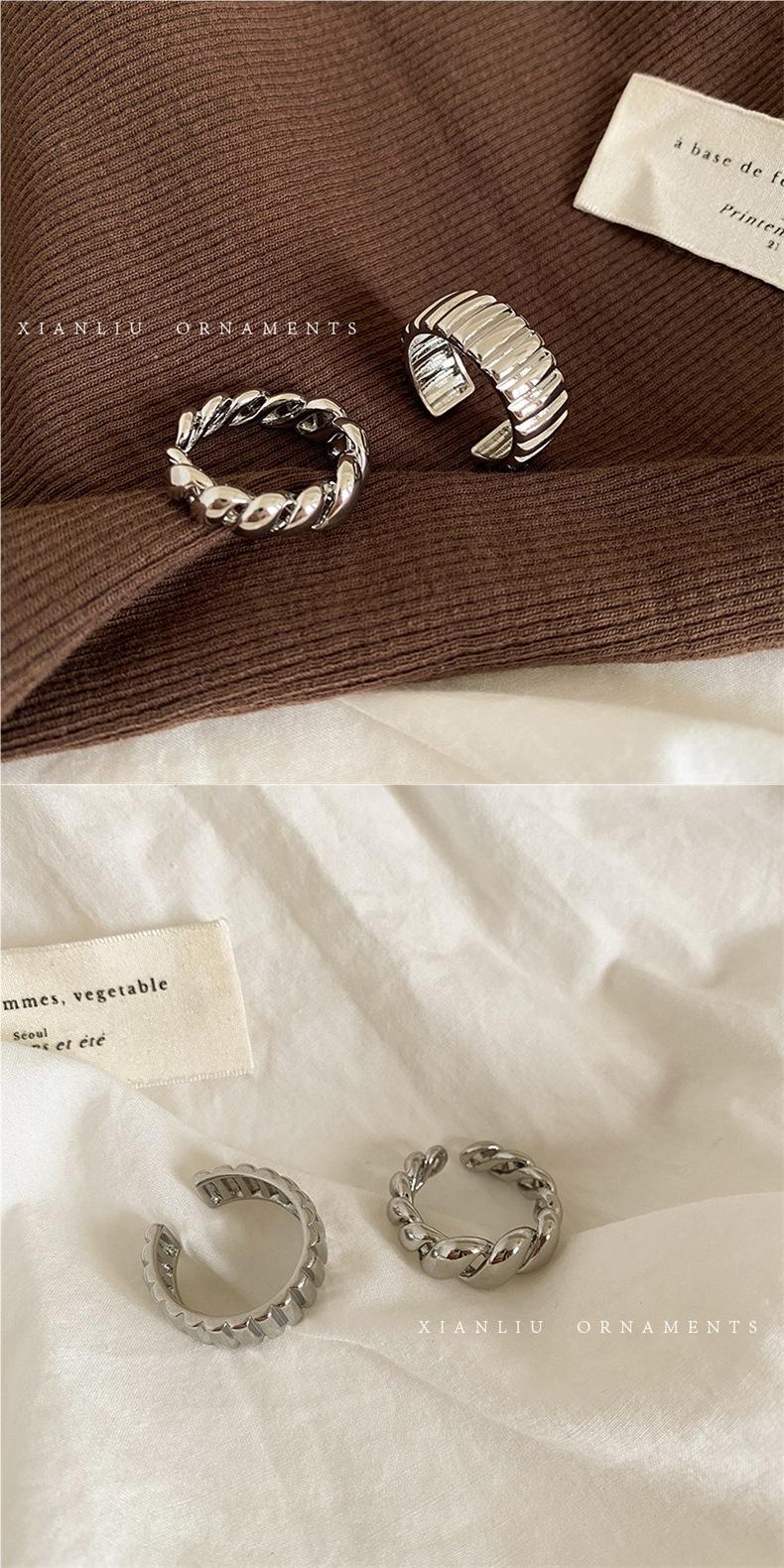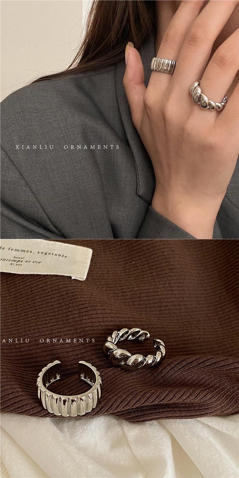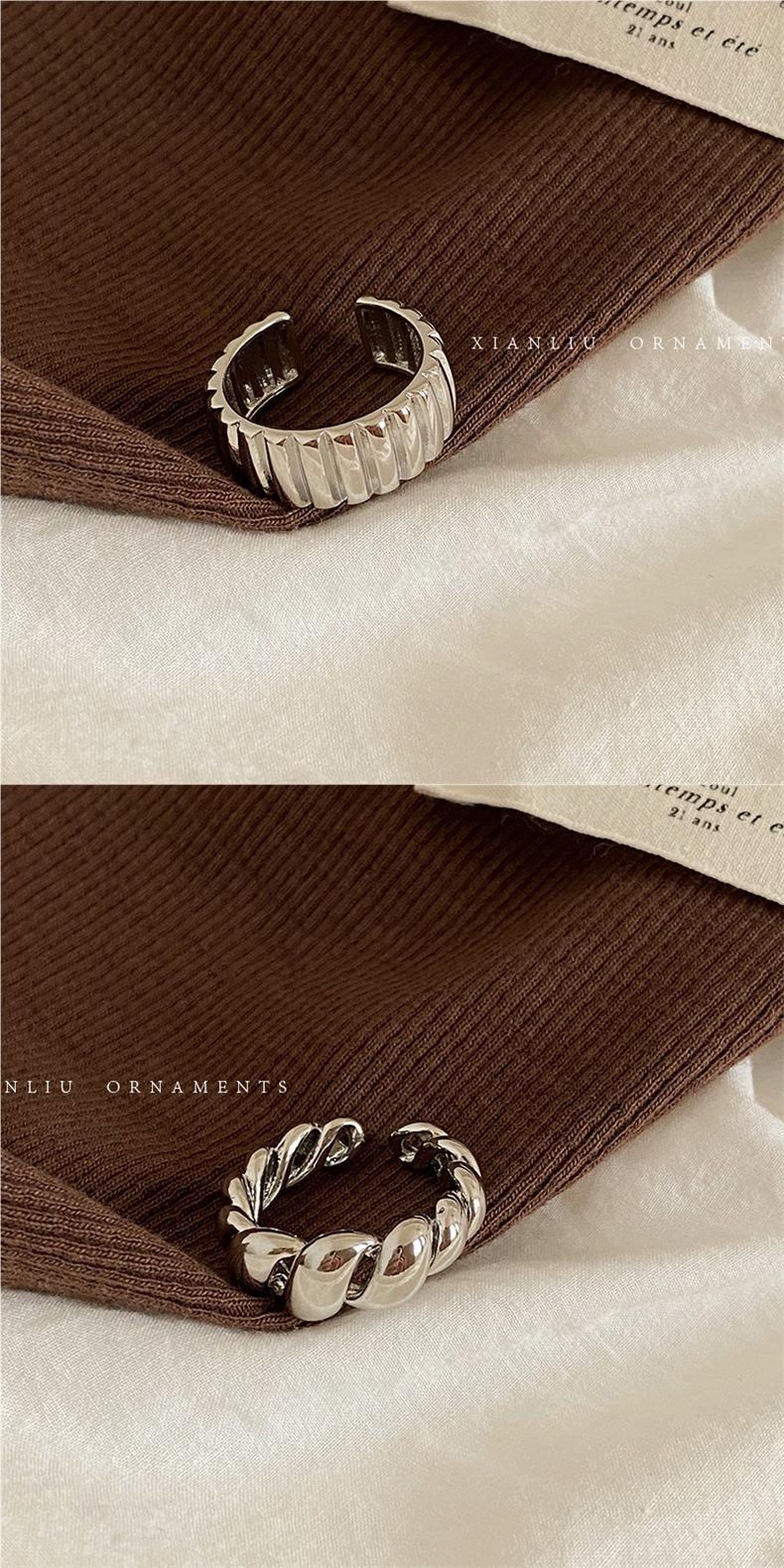 Anillo Hueco de Baguette Croissant de Plata S925 Versión Coreana para Mujer, Anillo Abierto Hip-Hop de Moda Retro, Anillo Creativo para el Dedo Índice
