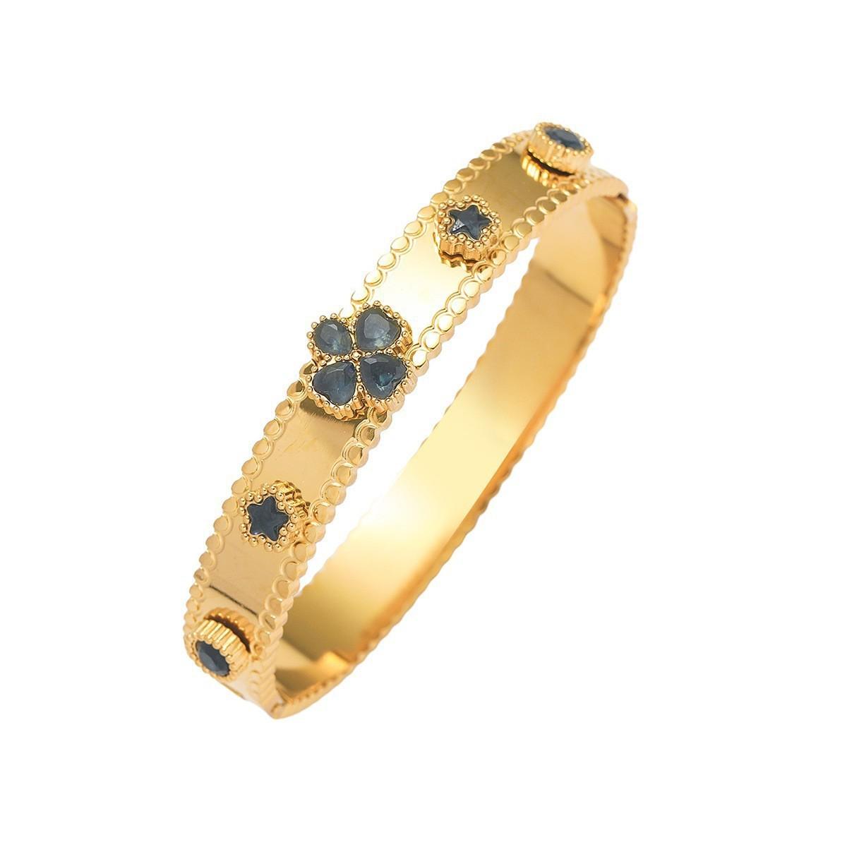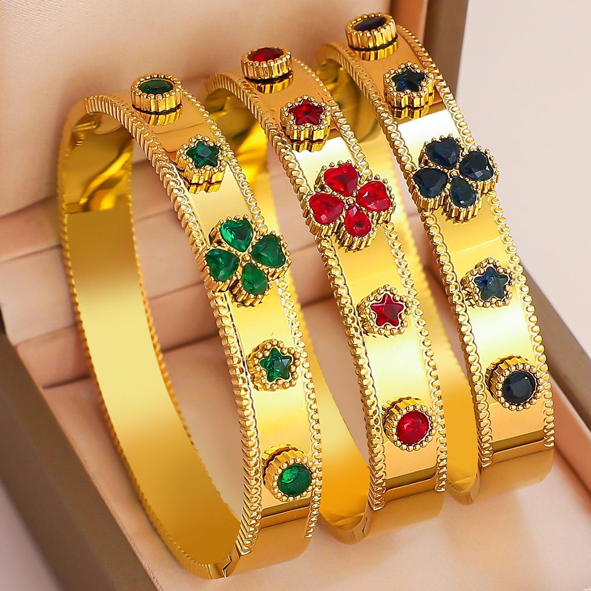 Pulsera de Acero de Titanio para Mujer Nueva Transfronteriza Flor de Tres Pétalos Diseño Howlita Pulsera Estilo Europeo y Americano Nicho Sentido de Alta Gama Brazalete