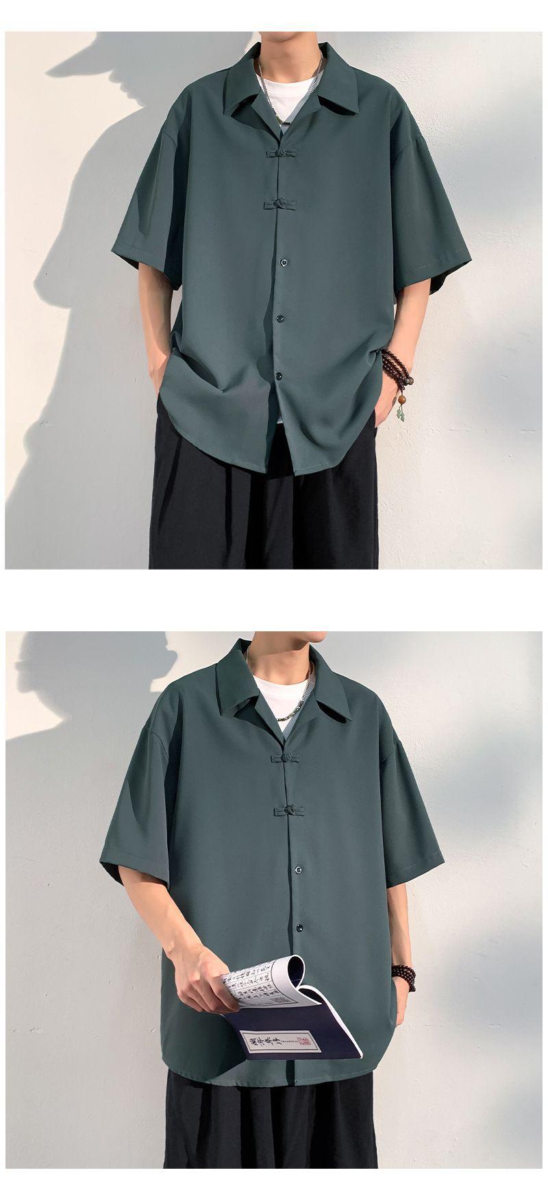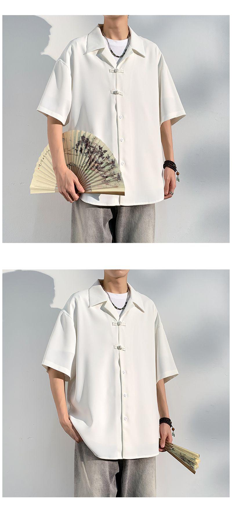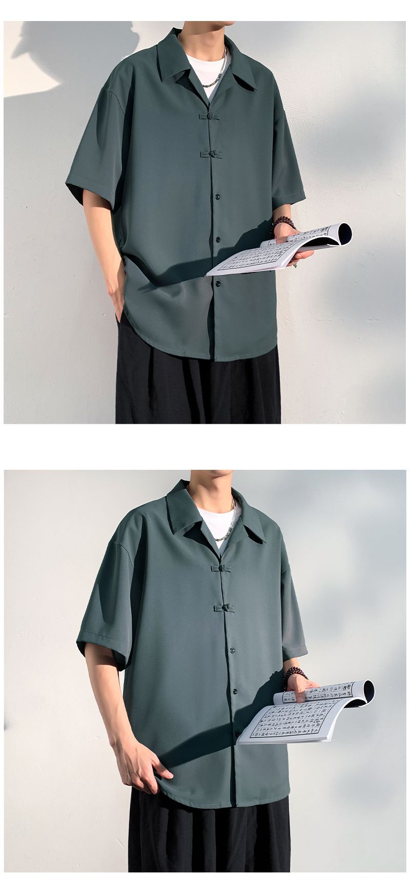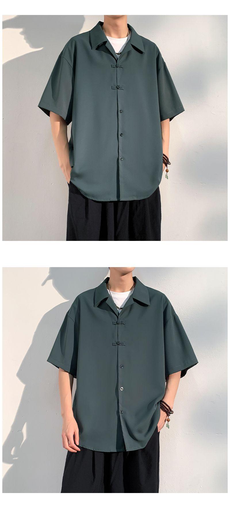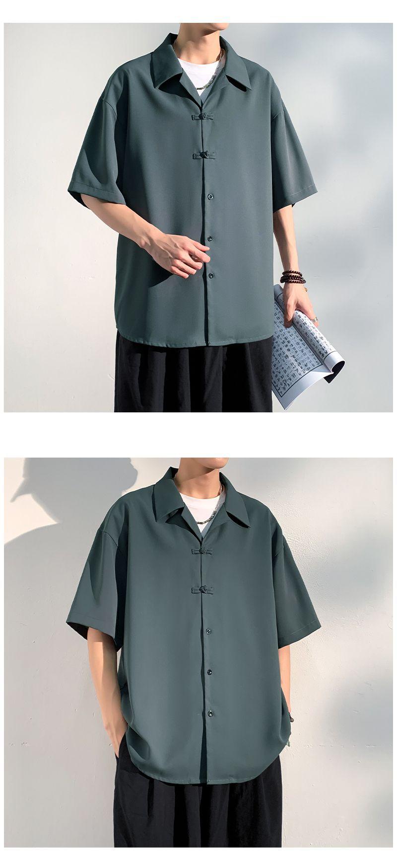 Edición Especial de Verano Camisa de Manga Corta Casual Versátil Lisa de Seda de Hielo con Botones Estilo Chino Nuevo para Hombre