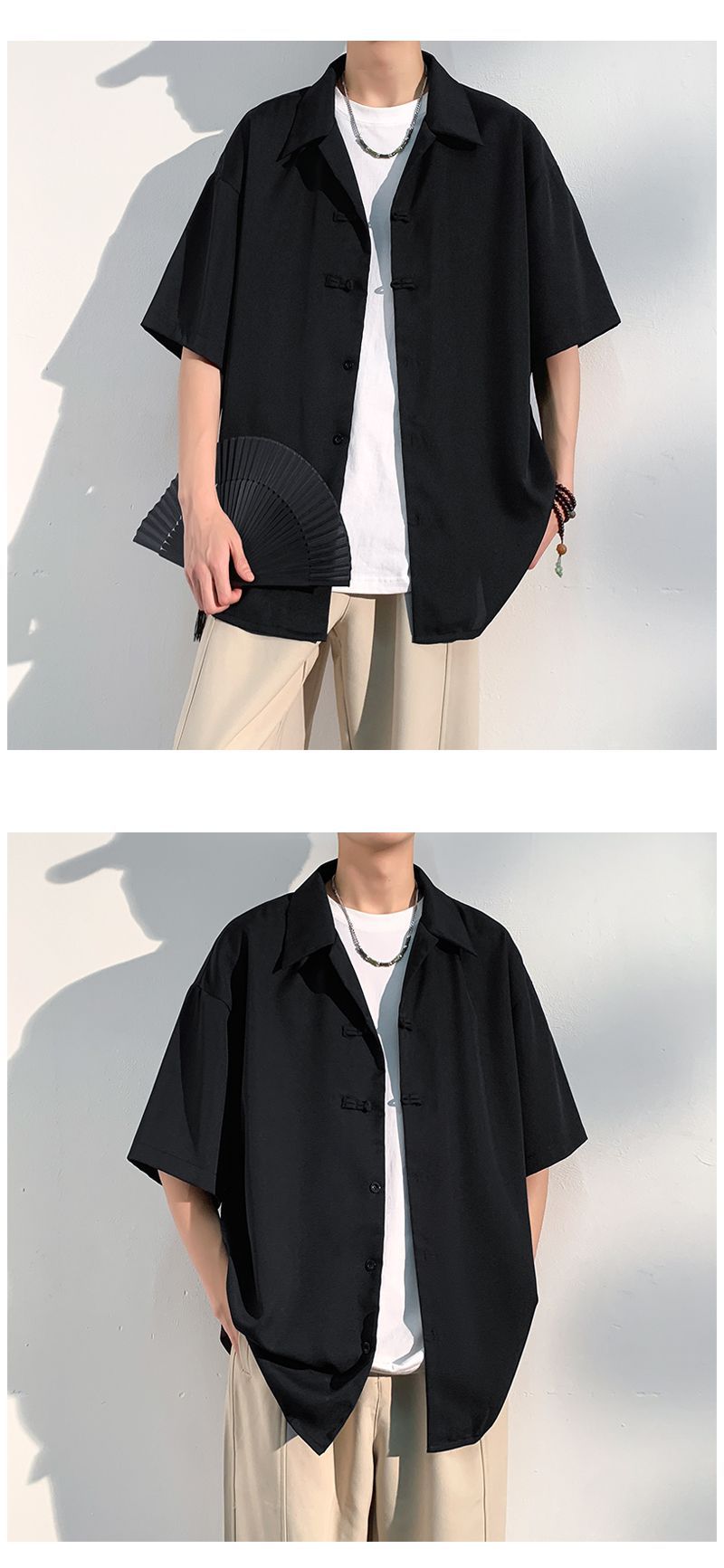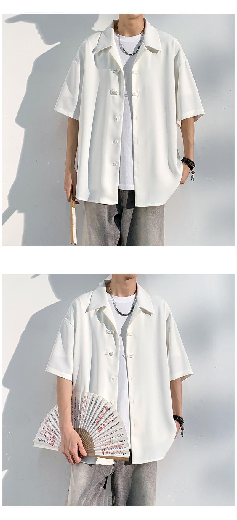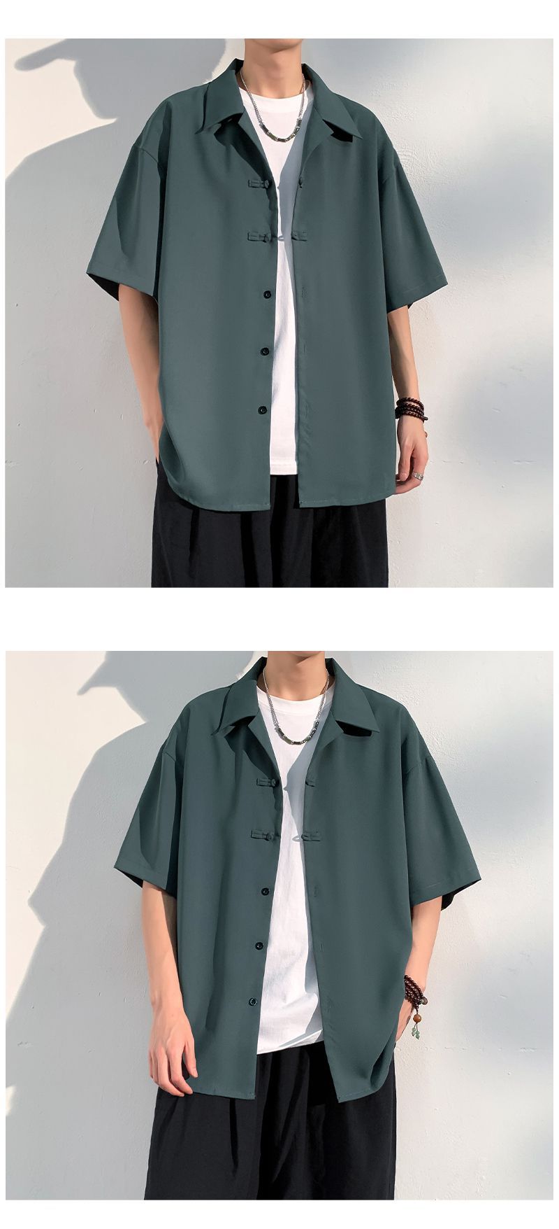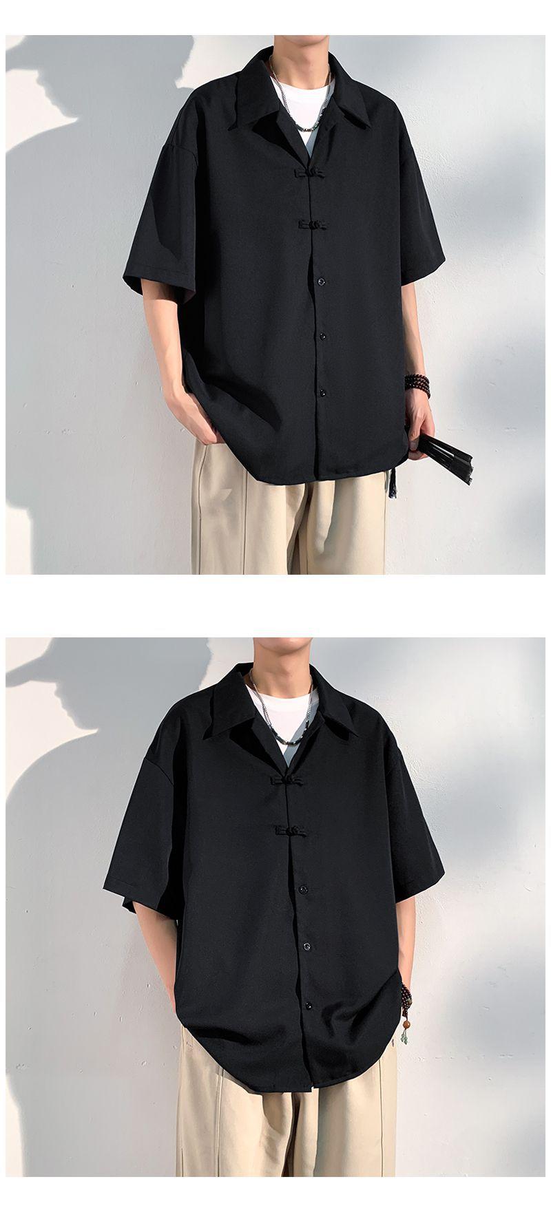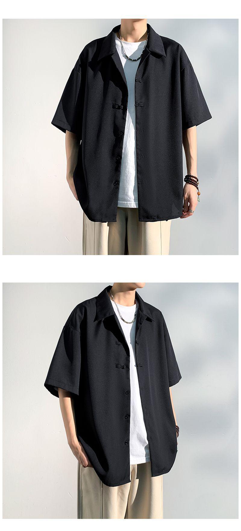 Edición Especial de Verano Camisa de Manga Corta Casual Versátil Lisa de Seda de Hielo con Botones Estilo Chino Nuevo para Hombre