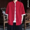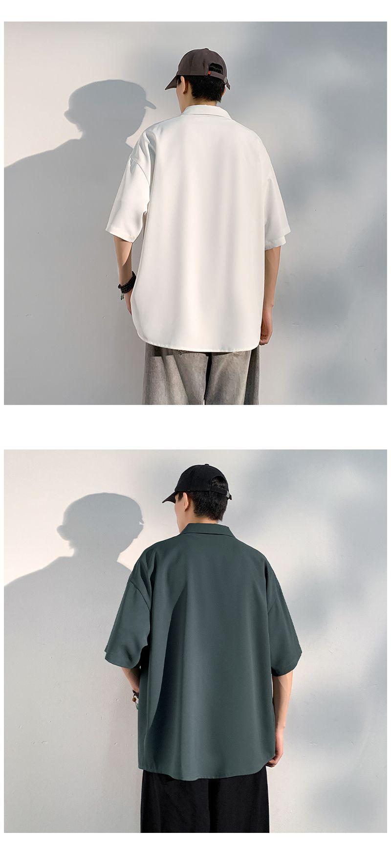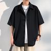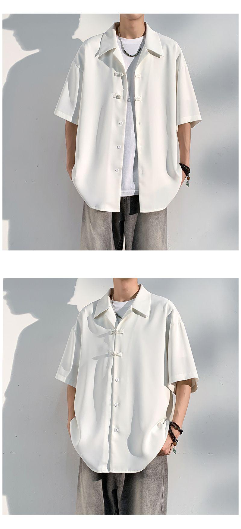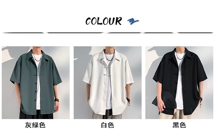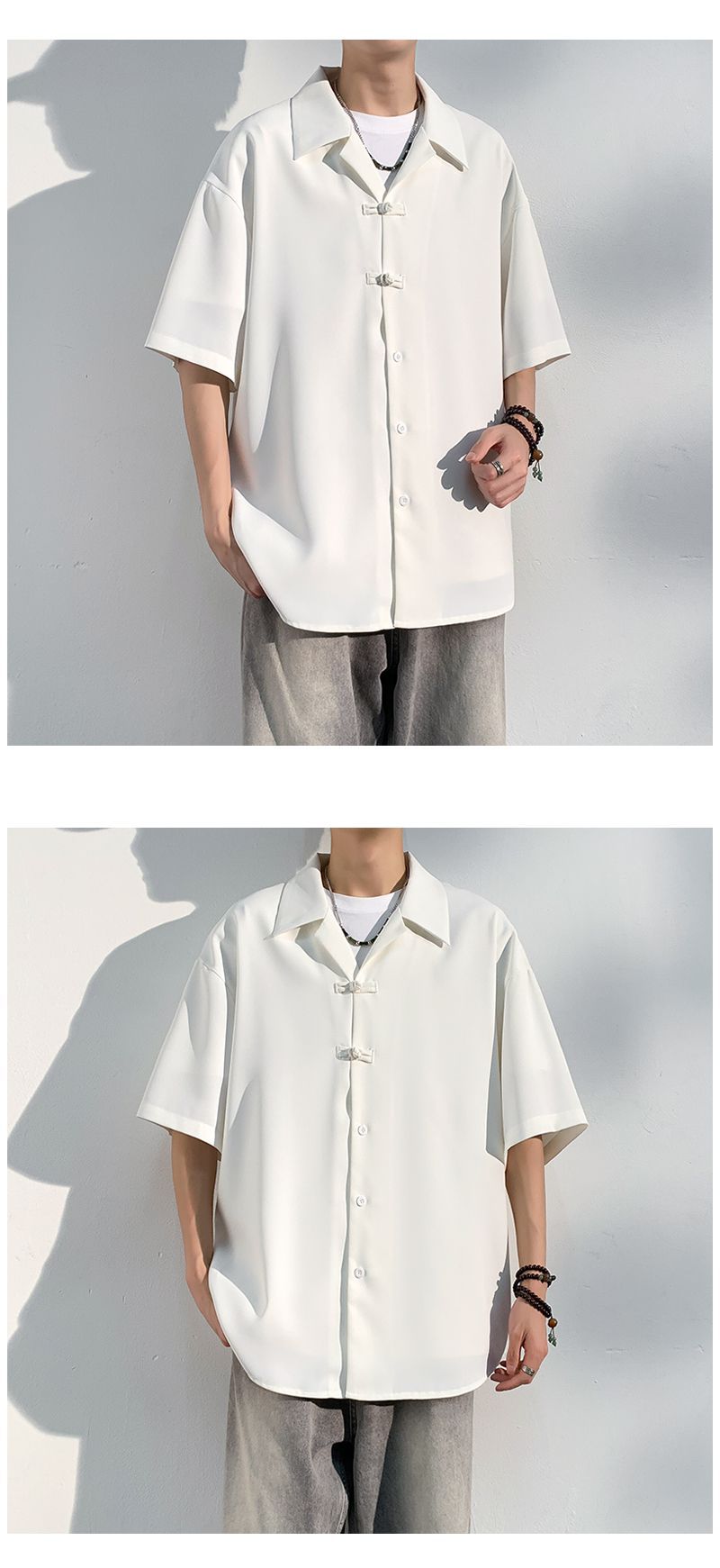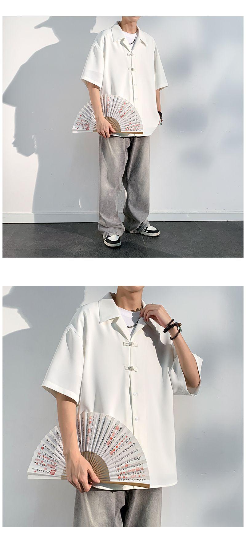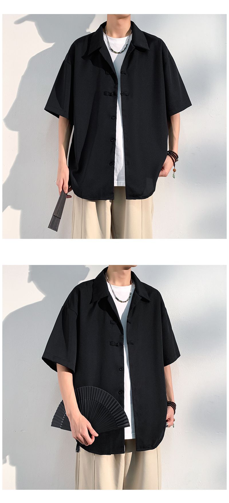 Edición Especial de Verano Camisa de Manga Corta Casual Versátil Lisa de Seda de Hielo con Botones Estilo Chino Nuevo para Hombre
