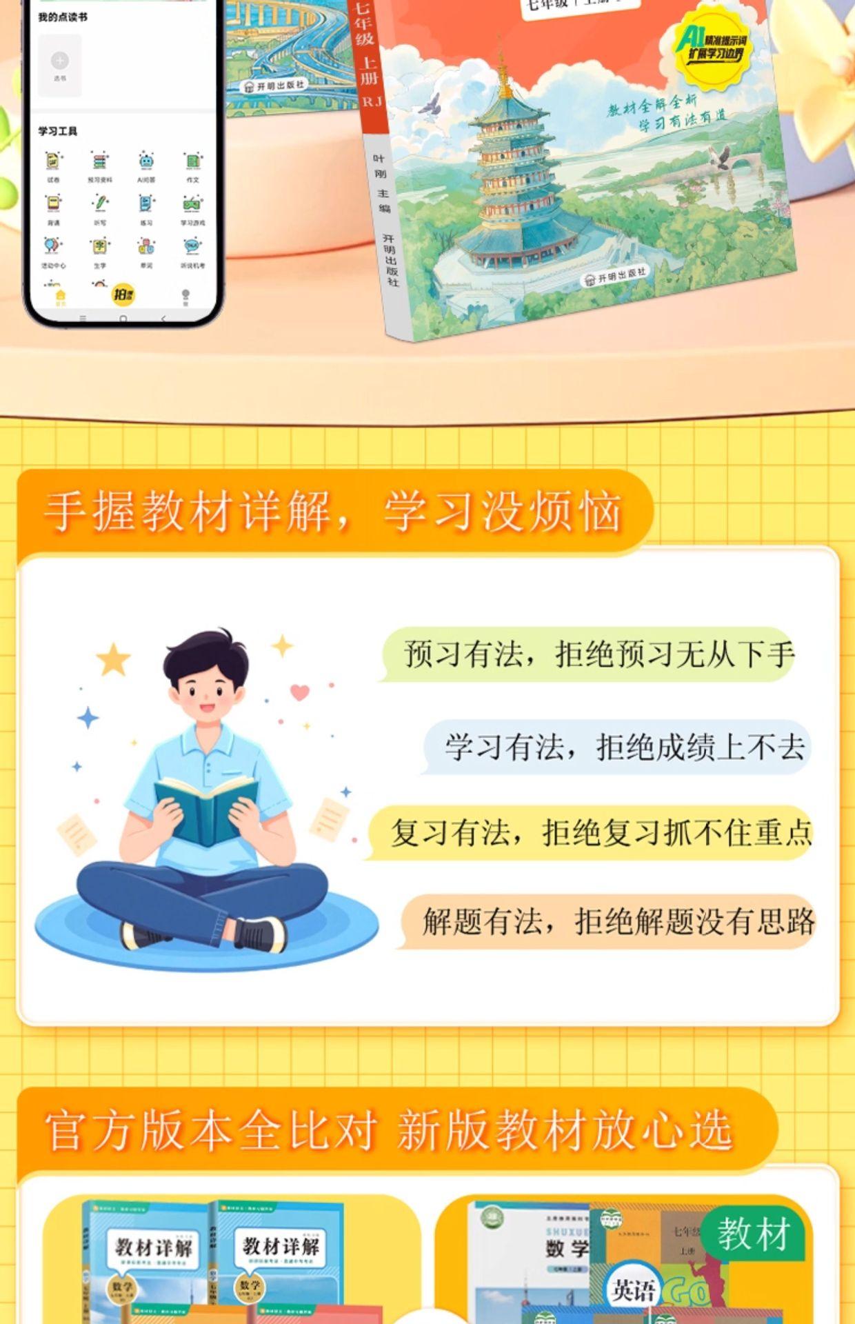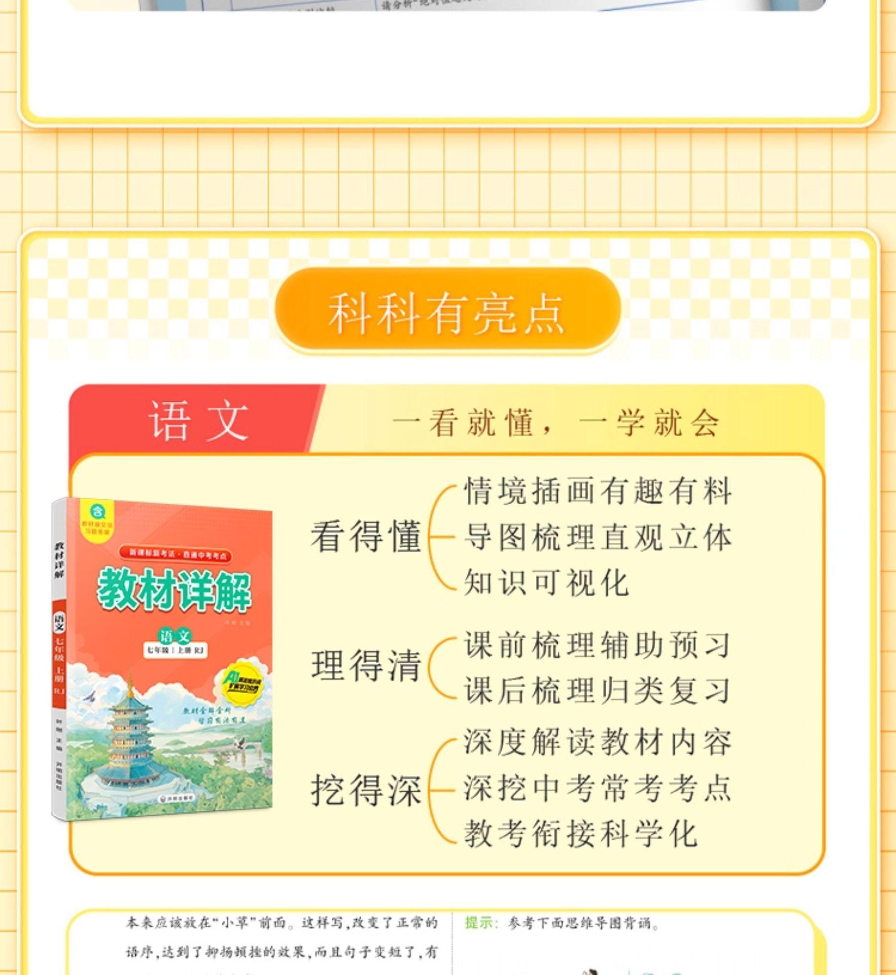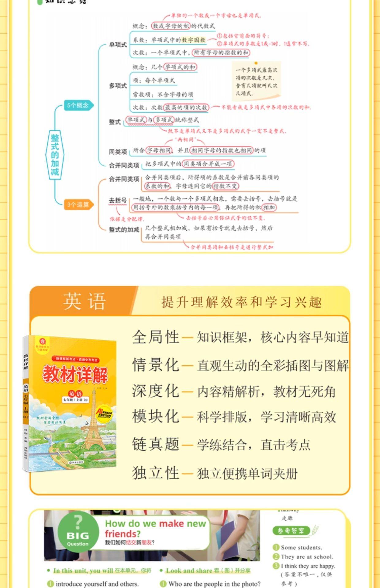 Grade 7 First Semester Chinese+Mathematics+English•Renjiao Edition (Price Limit 69.8), Grade 7 Semester 1 Lang...