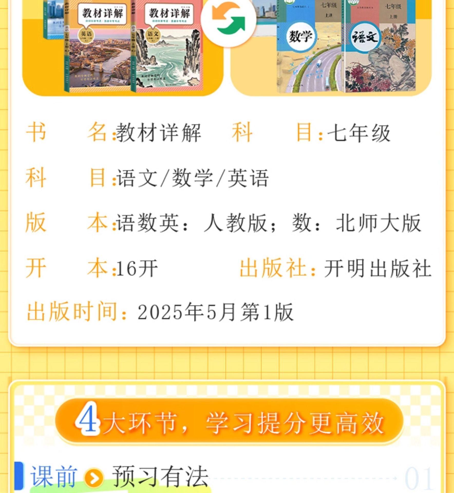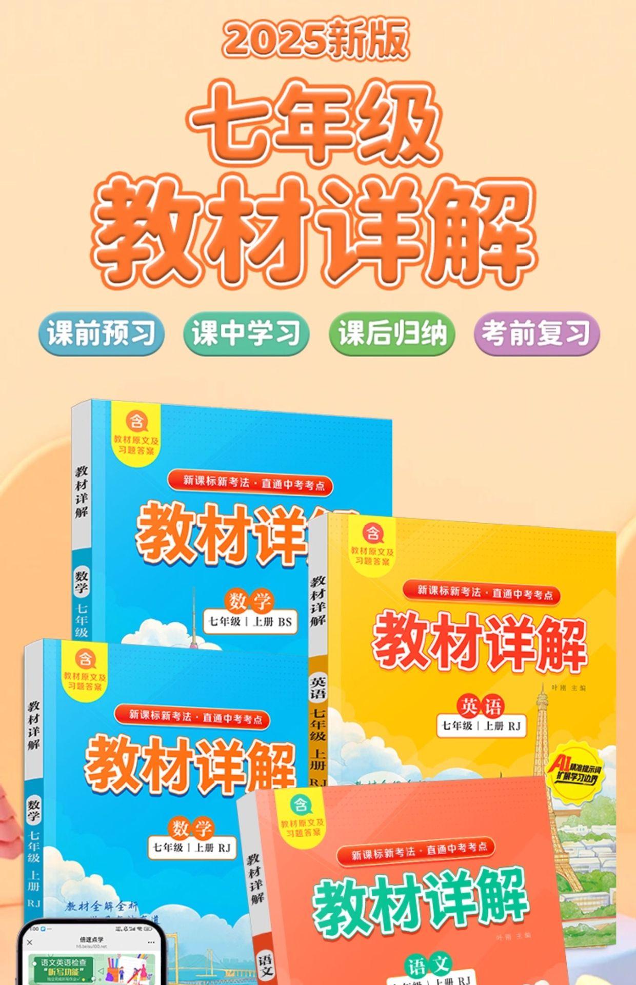 Grade 7 First Semester Chinese+Mathematics+English•Renjiao Edition (Price Limit 69.8)
