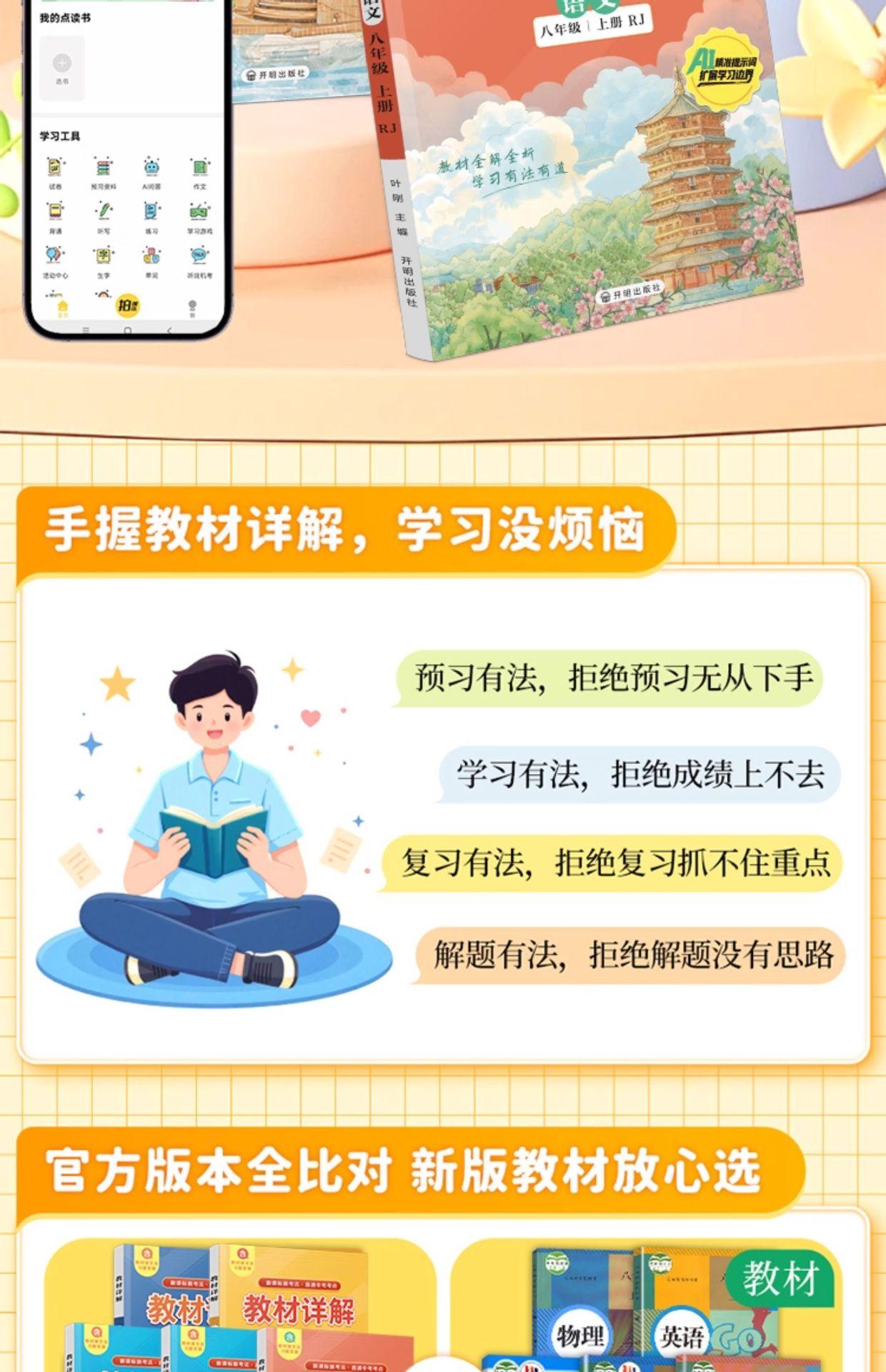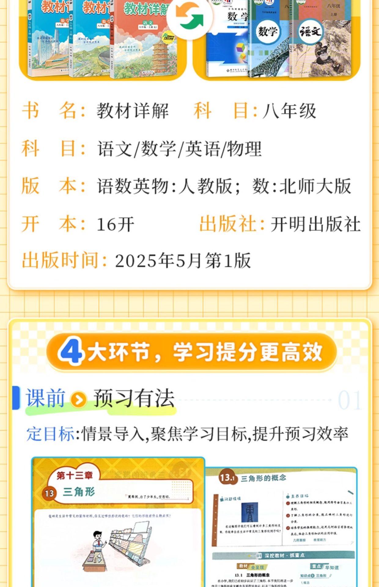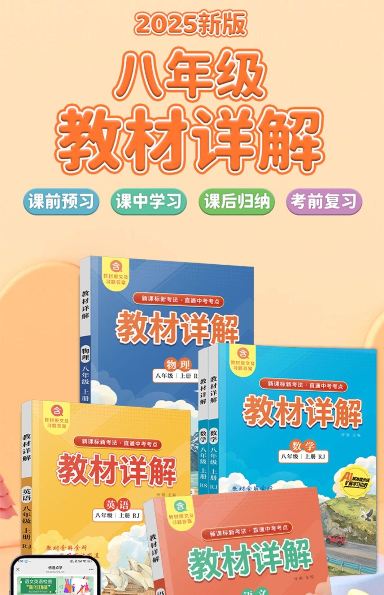 Eighth Grade First Semester Language Arts+Mathematics+English+Physics•Renjiao Edition (Price Limit 89.8)