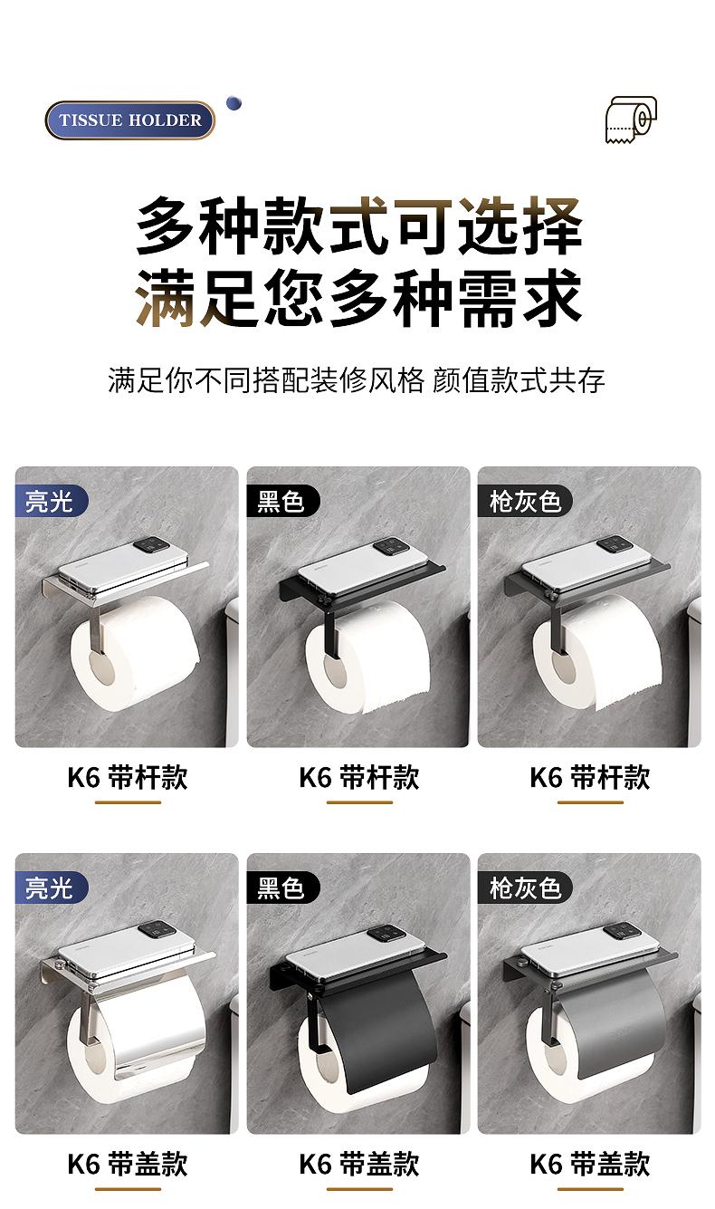 K6 single-piece paper towel holder [bright light] punch + no punching required, K57 double-tube paper towel ho...