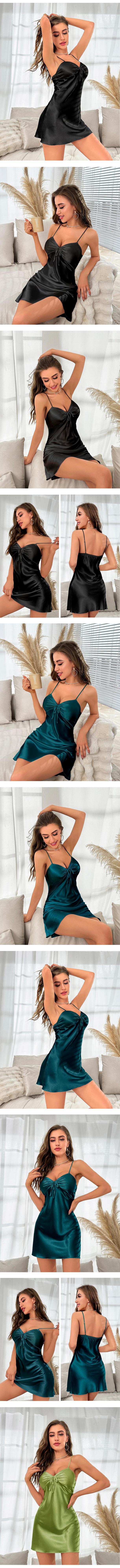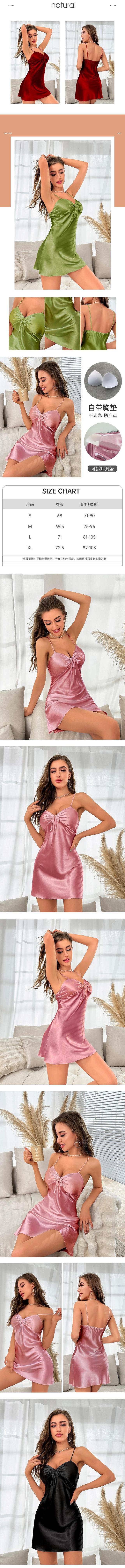 Yaoting Pijama de Seda de Hielo Amazon Camisón para Mujer Espalda Descubierta Tirantes Espagueti Camisón con Almohadillas para el Busto Ropa de Hogar para Damas 3239