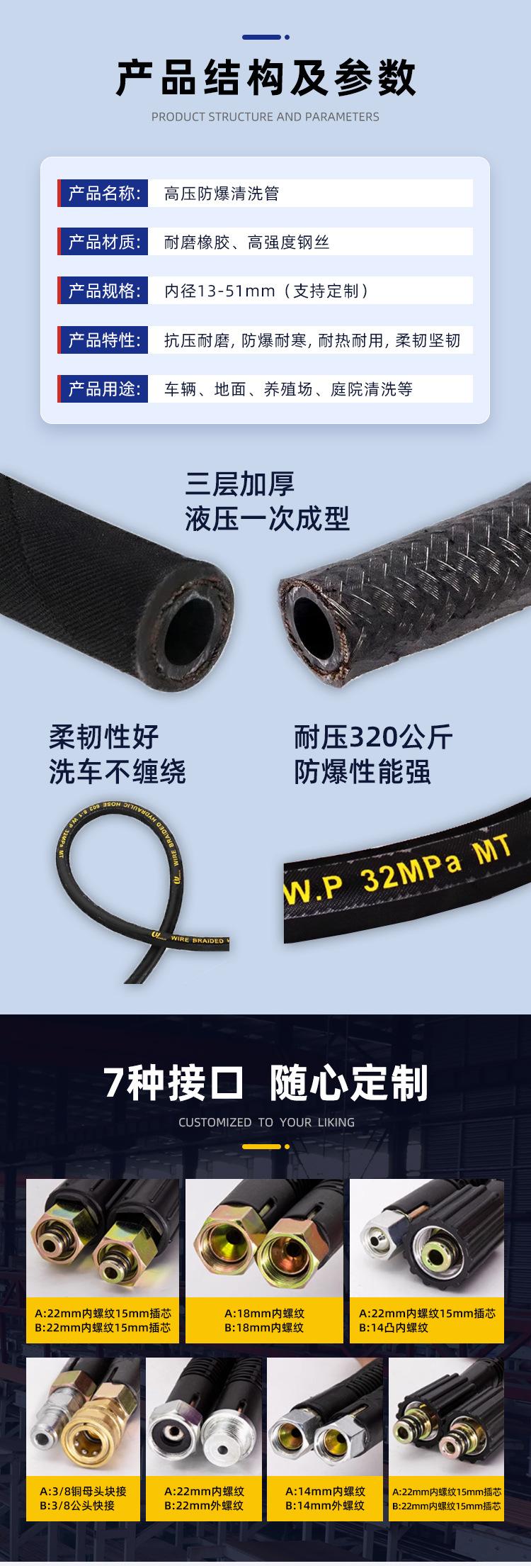 Manguera de Punto Personalizada por el Fabricante Manguera de Alta Presión para Lavadora de Autos Tubo Transfronterizo Manguera de Alambre de Acero Tubo de Aceite Hidráulico Máquina de Limpieza