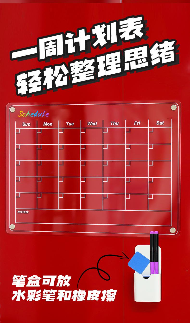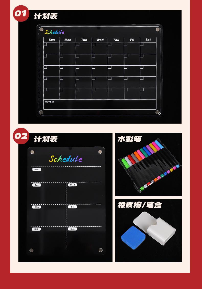 15*30cm printed weekly model + blank model + 1 pen holder + 1 eraser + 4 pens (2 black, 1 red, 1 yellow) 1 set (2 pieces)