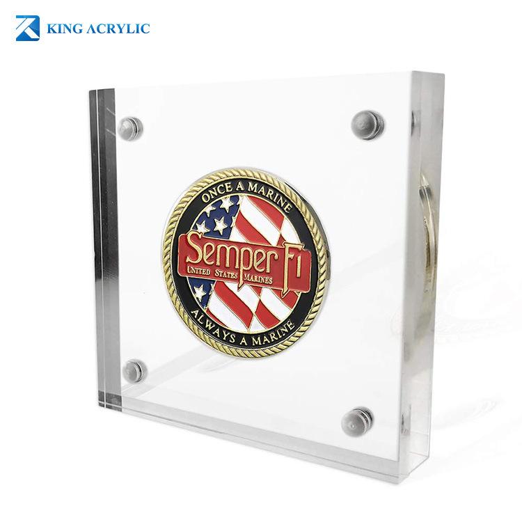 Portamonedas Conmemorativo Magnético Fuerte Transparente Grueso a Prueba de Polvo Adorno de Escritorio Estante Exhibidor de Monedas Soporte Acrílico para Insignias