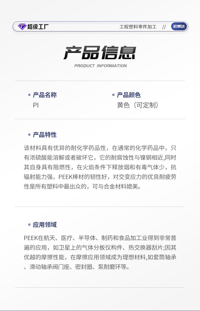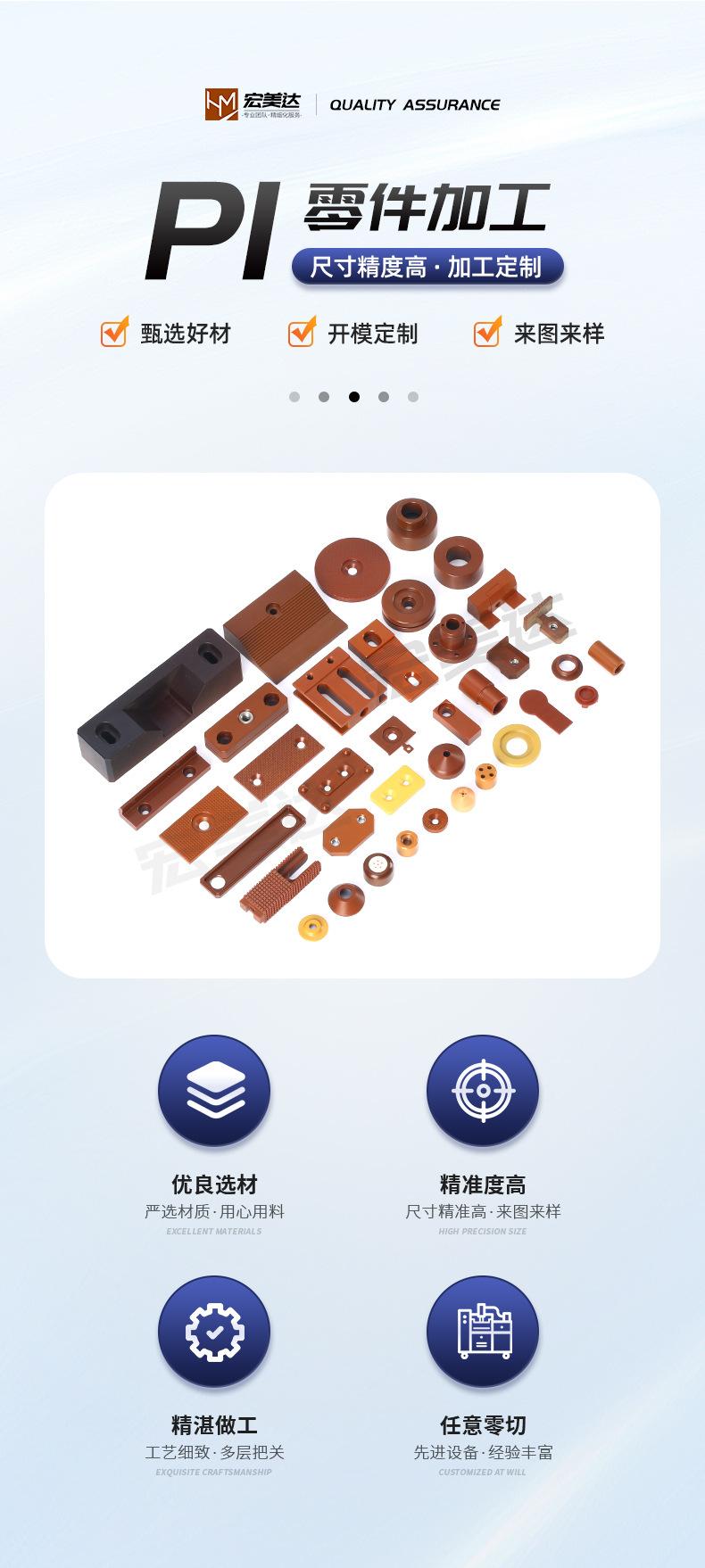 Piezas de Plástico Pi Poliimida Torneado de Alta Precisión Fresado Procesamiento Compuesto Tamaño Estándar Accesorios para Instrumentos Electrónicos Personalización