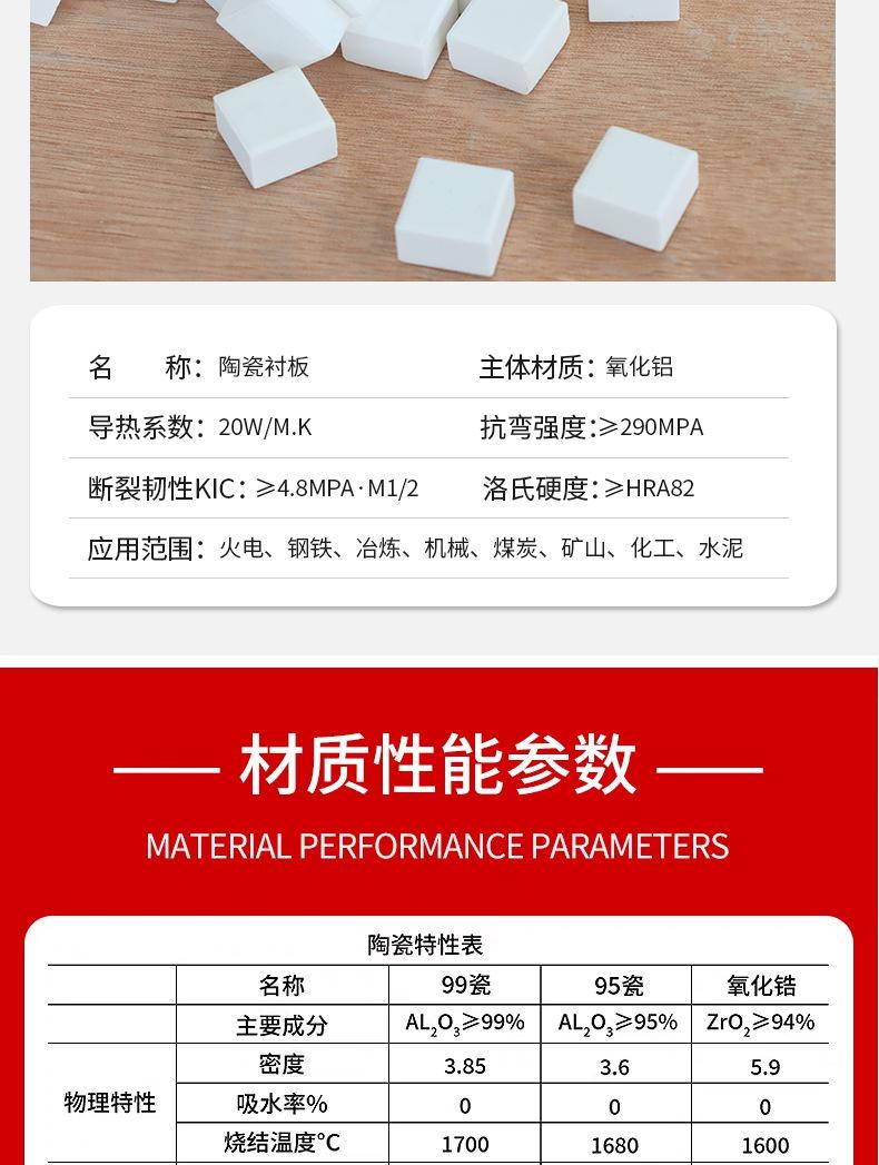 Revestimiento cerámico tres en uno resistente al desgaste, revestimiento de búnker de carbón ignífugo de alúmina, placa cerámica 95, revestimiento cerámico de alúmina
