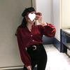 Otoño e Invierno 2024 Nueva Camisa Elegante Vintage con Cuello en V para Mujer Diseño Sensorial Moda Nicho Camisa de Manga Larga Sabor Hong Kong Top