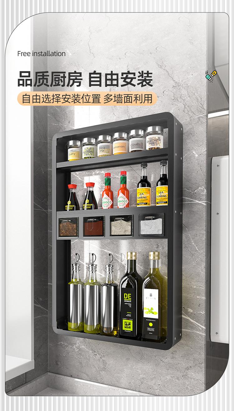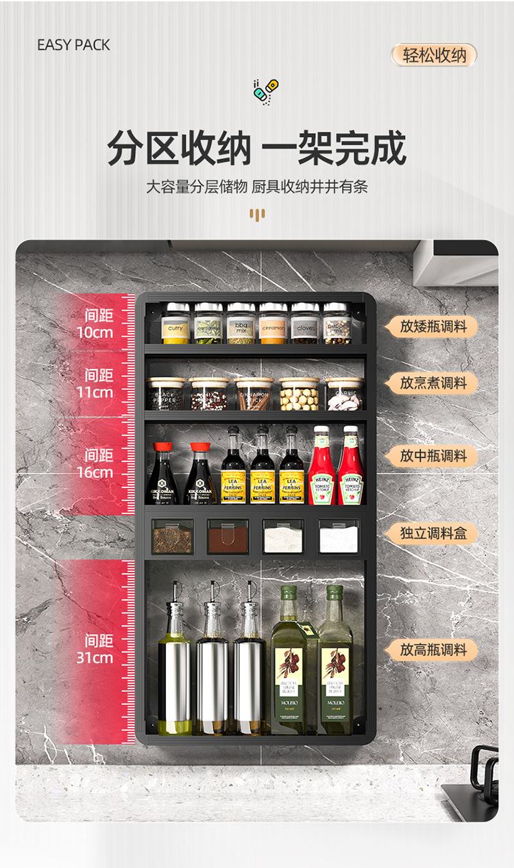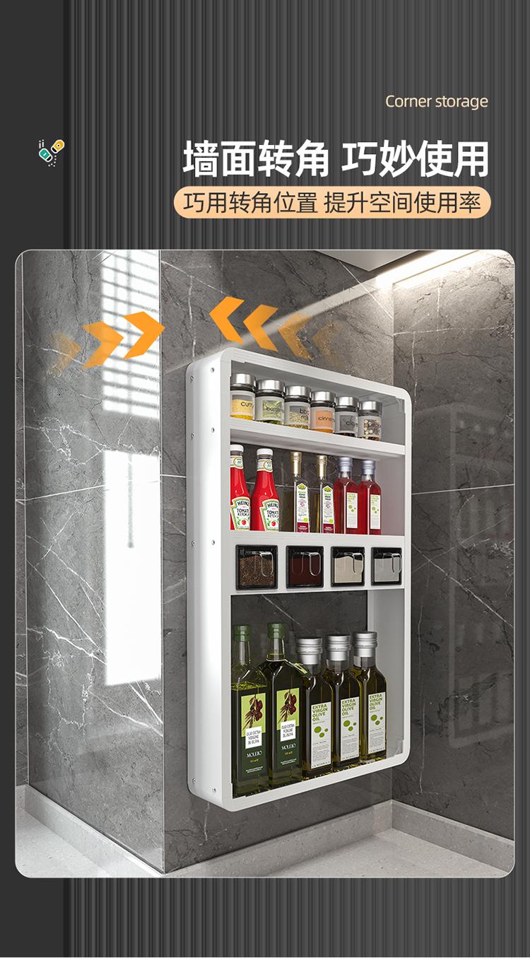 Estante de Cocina Montado en la Pared Sin Perforaciones Multifuncional Pared Almacenamiento Multicapa Estante Botellero de Condimentos Caja de Almacenamiento de Condimentos