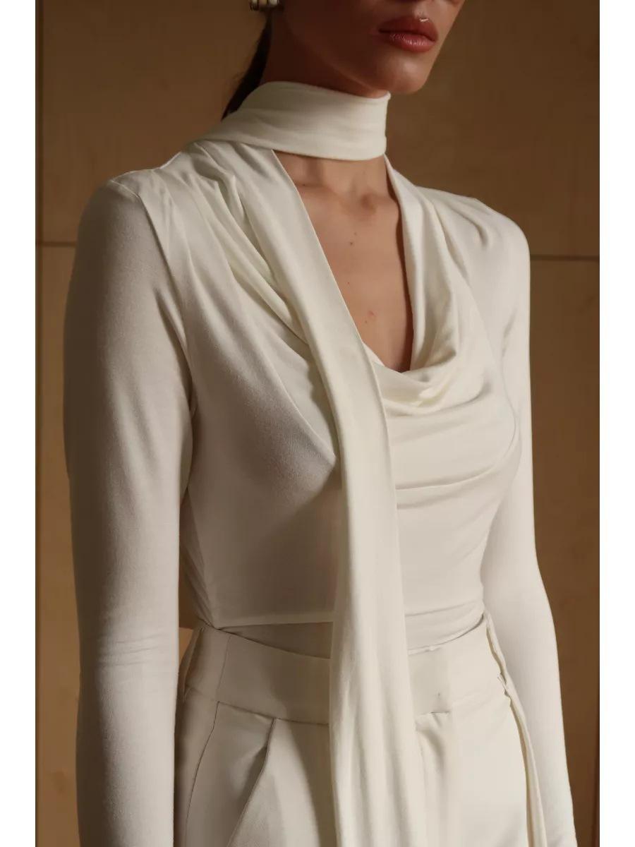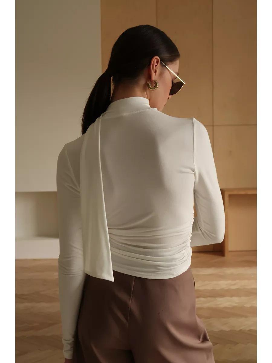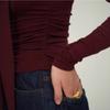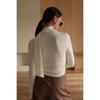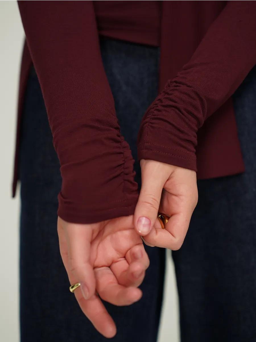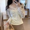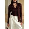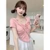 Verano 2025 Nuevo Cinta Cuello en V Cuello Caído Manga Larga Camiseta Base Top Ropa Interior Sentido del Diseño Camiseta Corta Fruncida Mujer