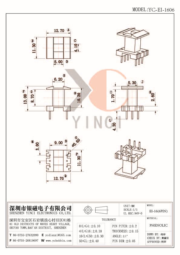 Tipo EE16 YC-EI-1606 3+3P esqueleto vertical, fabricante de esqueleto de bobina de inductancia