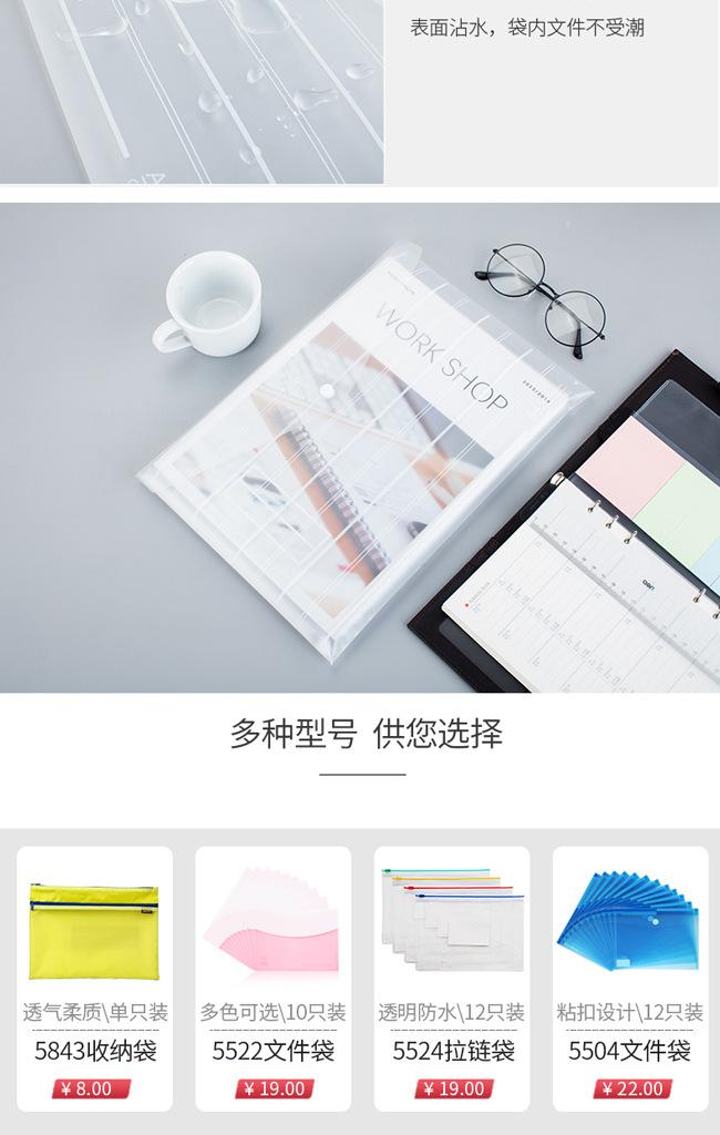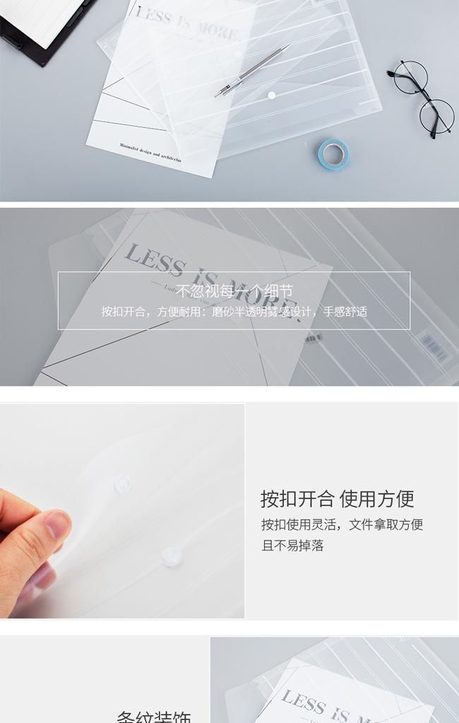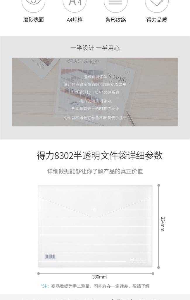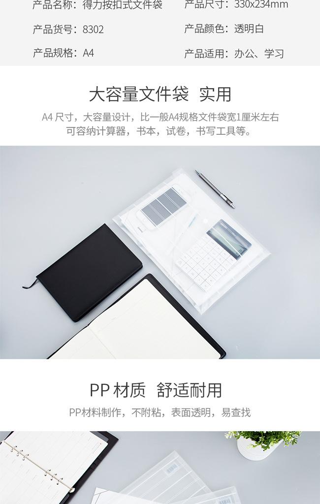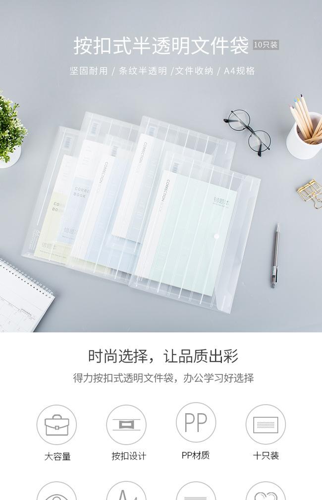 Deli 8302 Bolsa de Archivo Transparente Pp Tipo Broche Bolsa de Almacenamiento de Datos A4 Plástico Esmerilado Bolsa de Archivo con Botón Venta al por Mayor