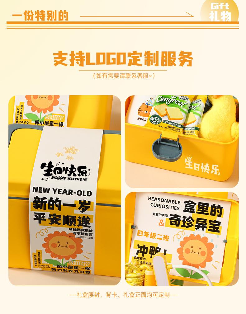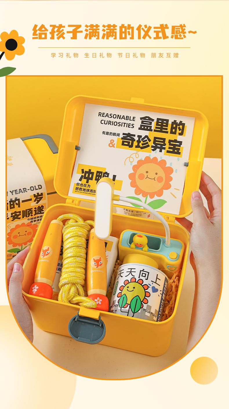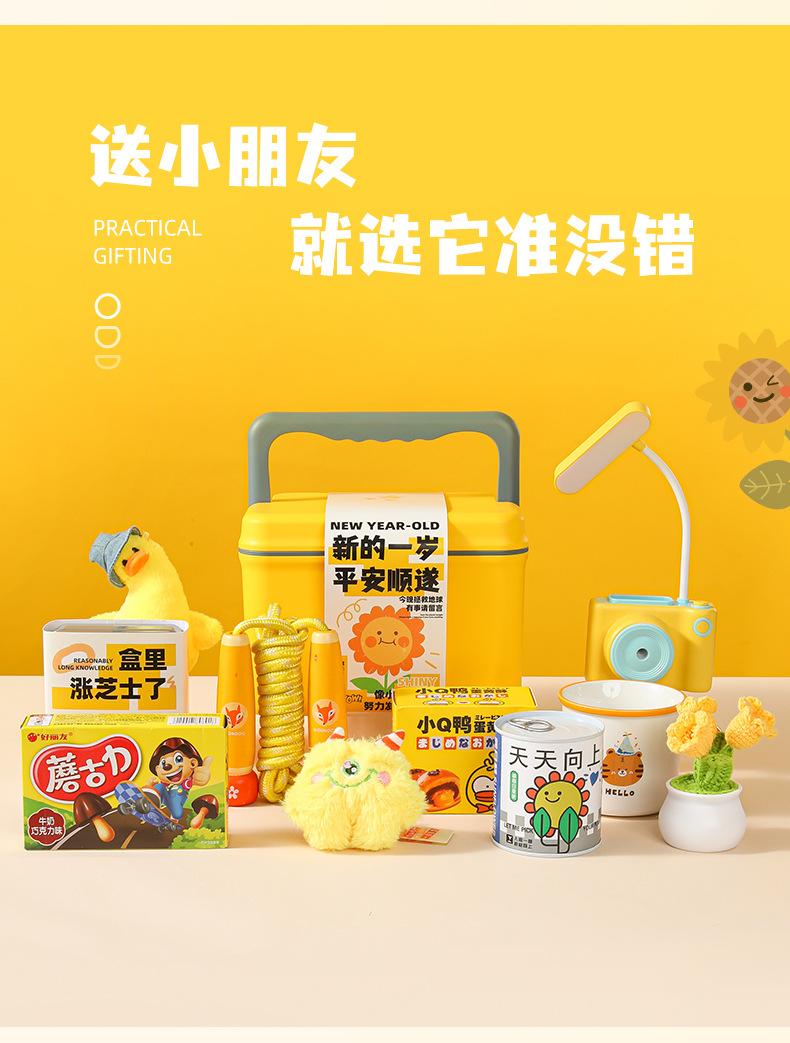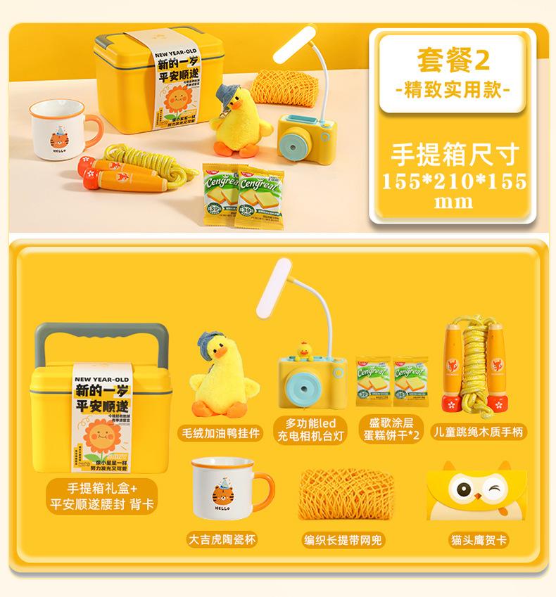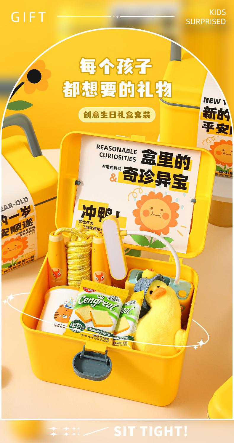 ✧Storage box [skipping rope + little yellow duck pendant + baby cup + night light + biscuits*2] (comes with a net bag)