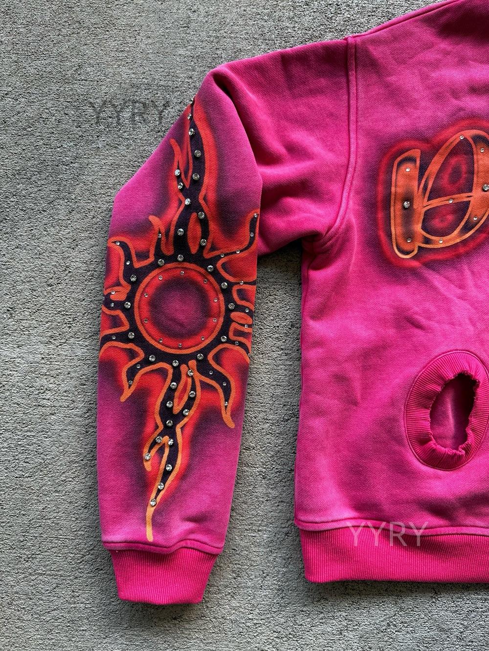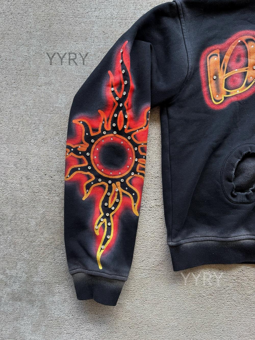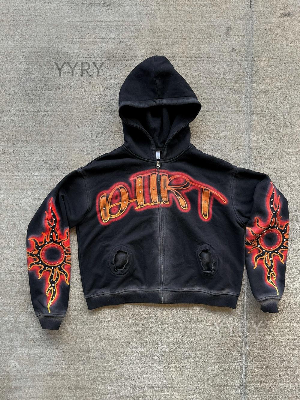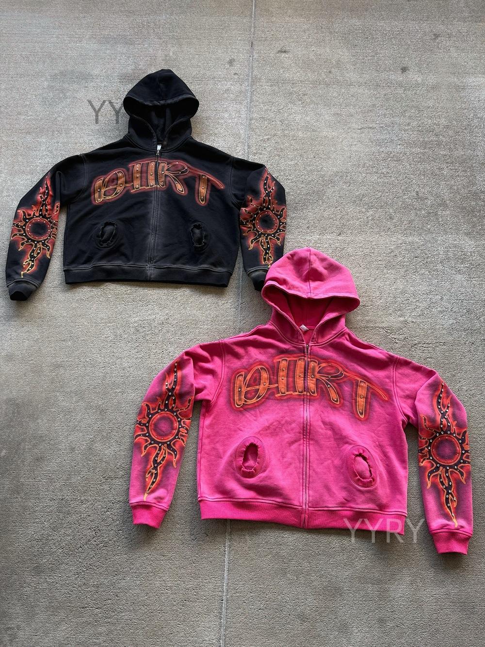 Suéter con cremallera de diamante caliente con impresión personalizada de comercio exterior europeo y americano, sudadera de manga larga, sudadera con capucha, chaqueta retro, tendencia urbana