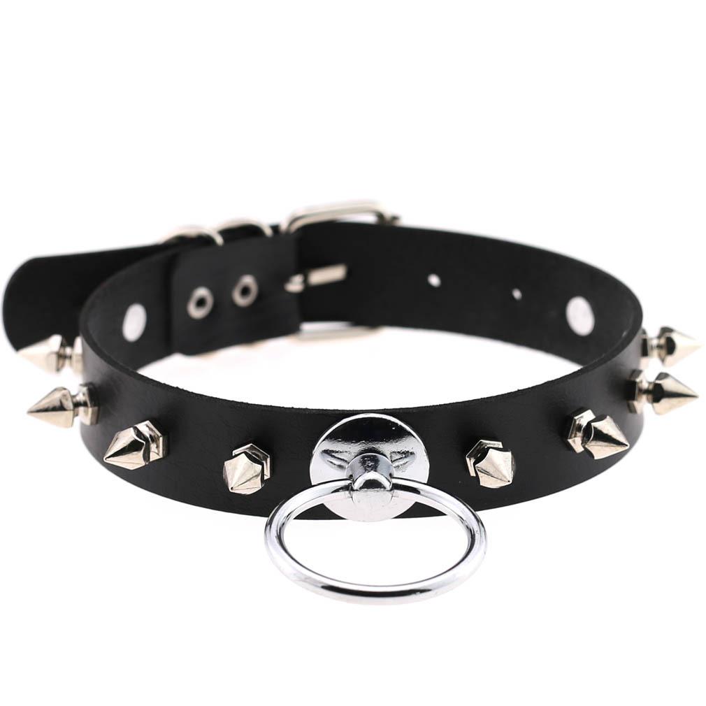 【Nombre del Producto】Gargantilla de Cuero con Remaches Redondos