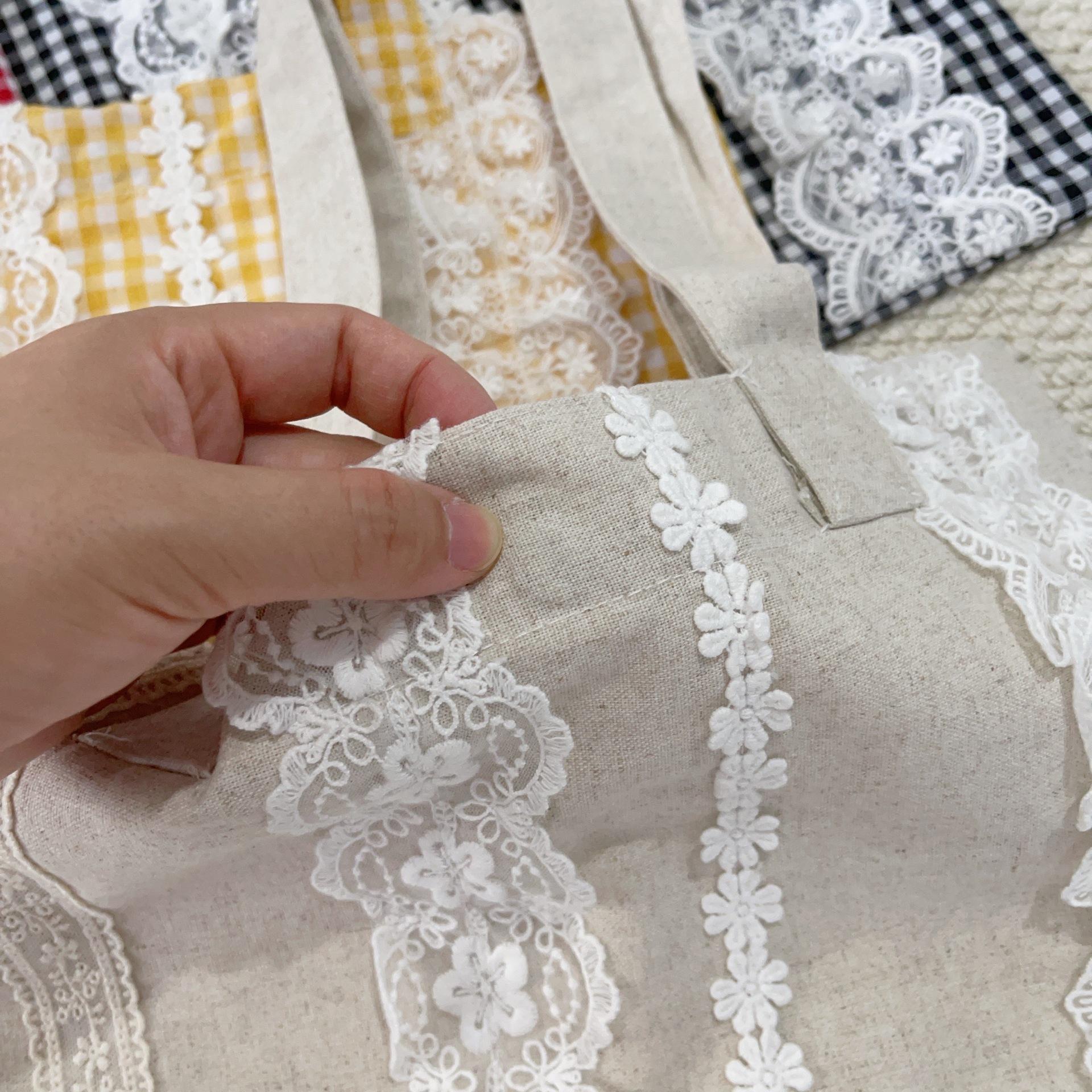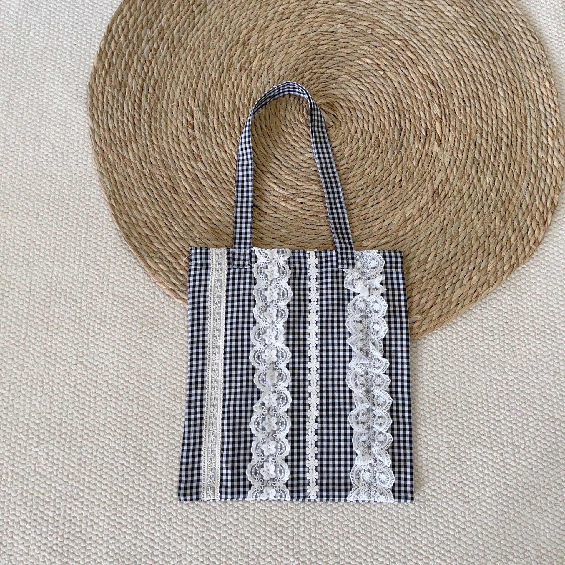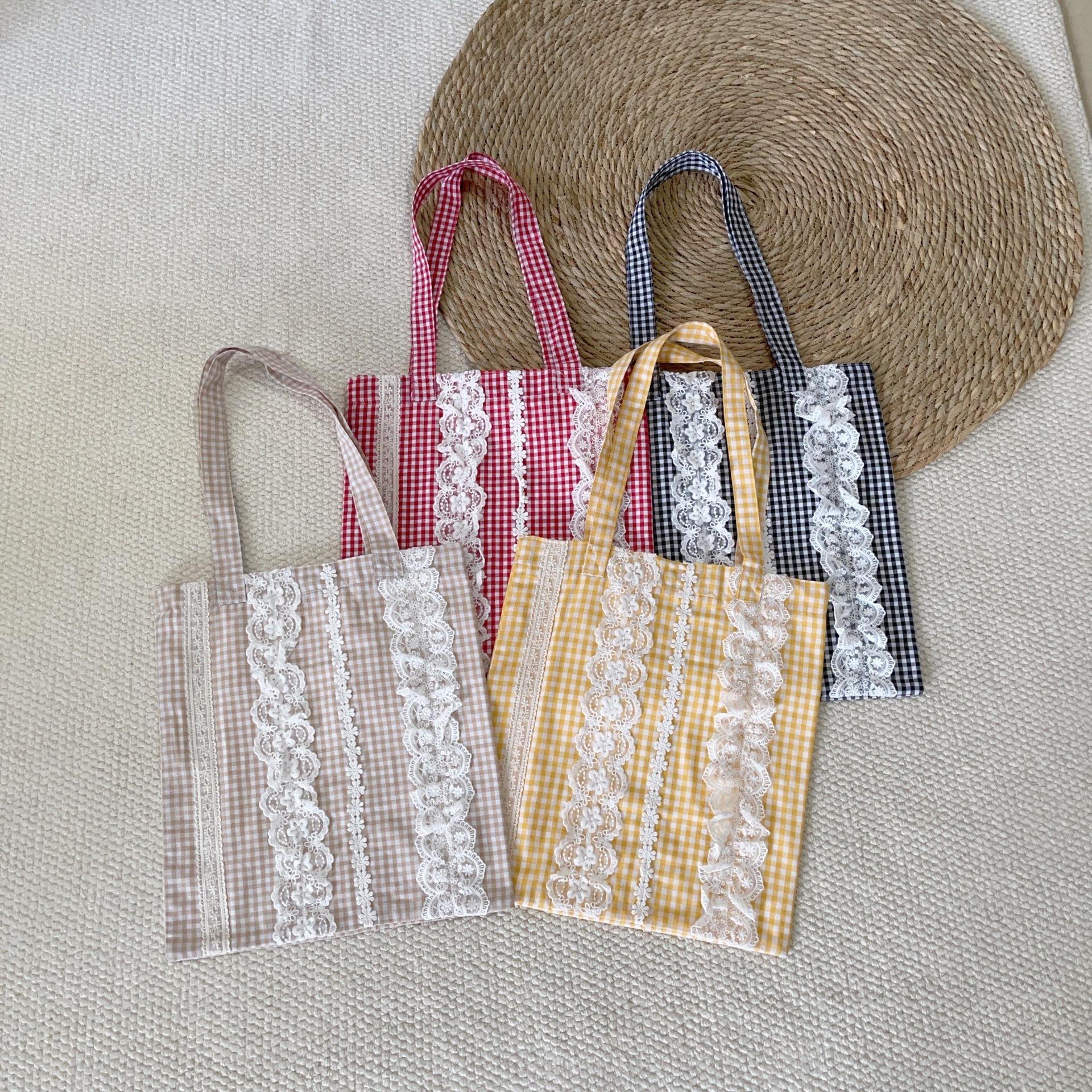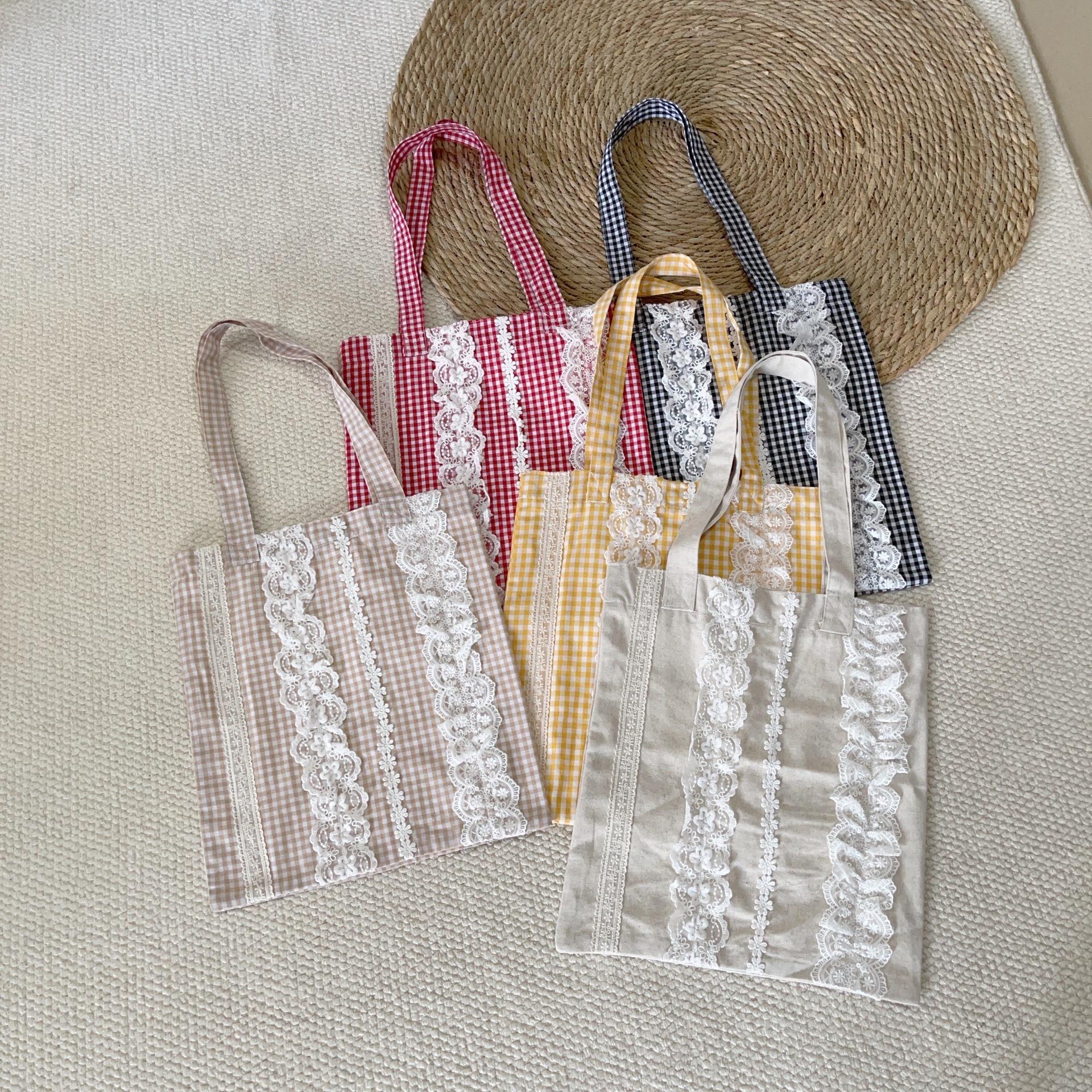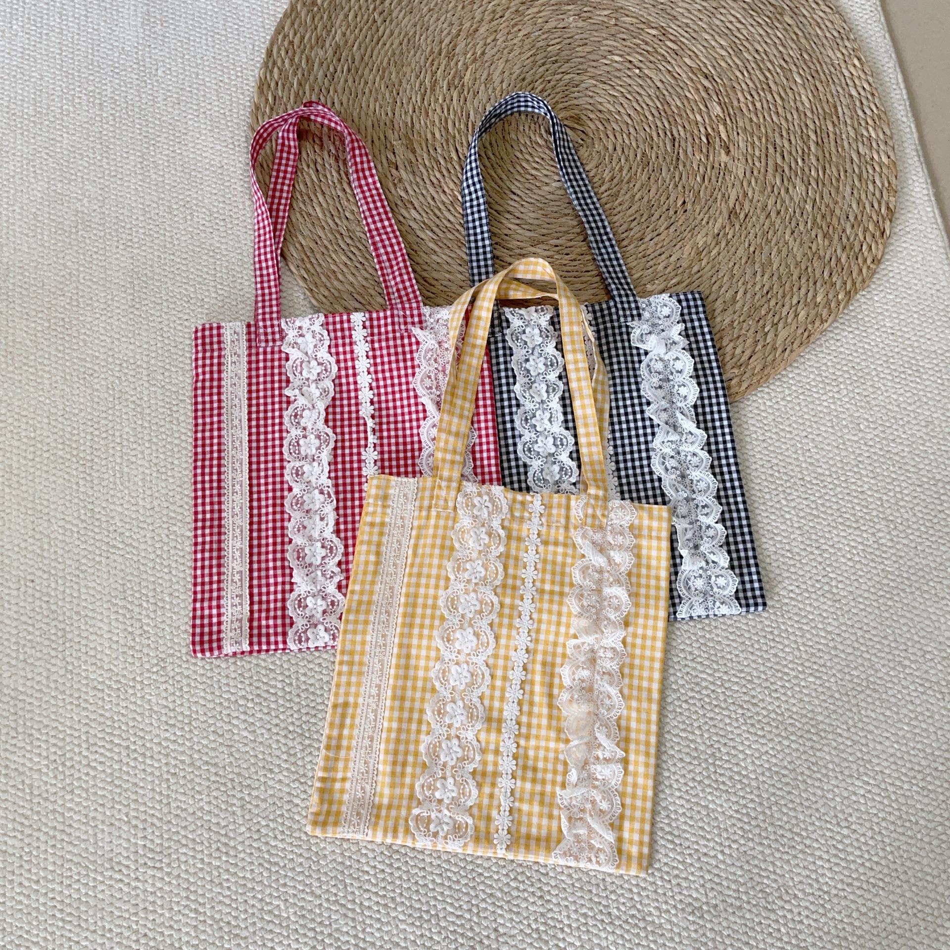 Bolso de hombro de lona de encaje ins nicho para mujer a cuadros para ir al trabajo, bolso tote de gran capacidad, bolso de mano de moda para viajes