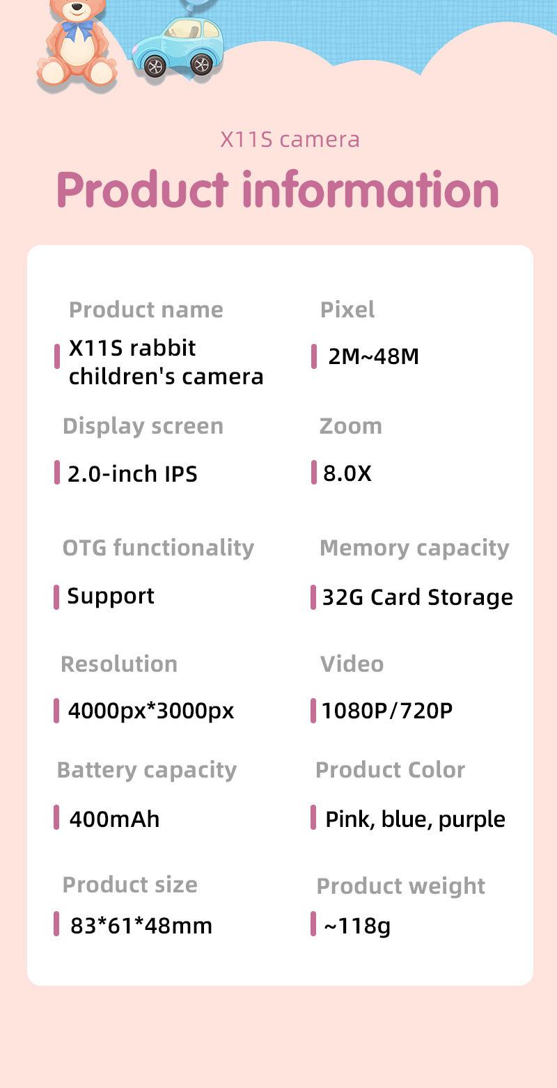 Nueva Cámara Infantil Linda Transfronteriza HD Doble Fotográfica Cámara Digital Mini Juguete Dibujo Animado Conejo