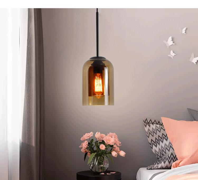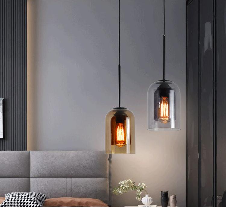 Nórdico Dormitorio Mesita de noche Simple Moderno Creativo Lámpara de Comedor Barra Mostrador Cable Largo Vidrio Luz Individual Lujosa Araña Pequeña