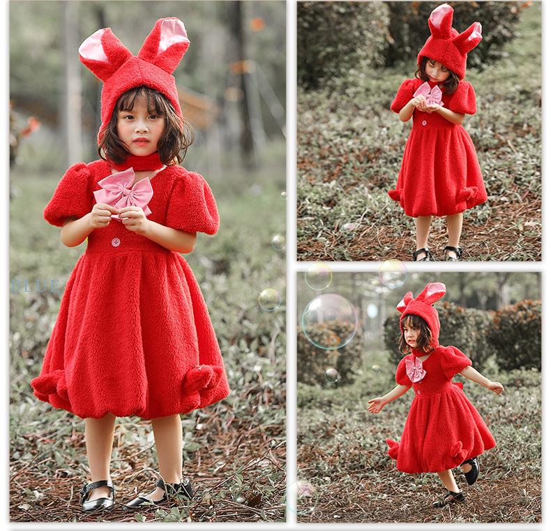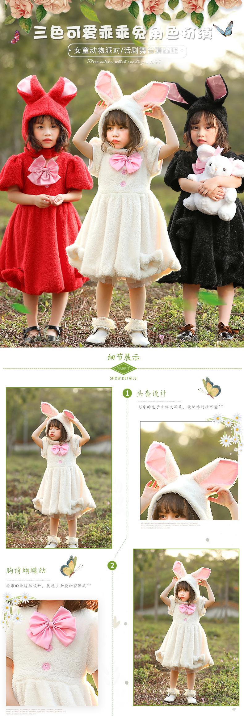 Disfraz de Halloween para niños, disfraz de teatro, vestido de conejo blanco, bonito y encantador, vestido de princesa.